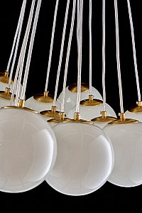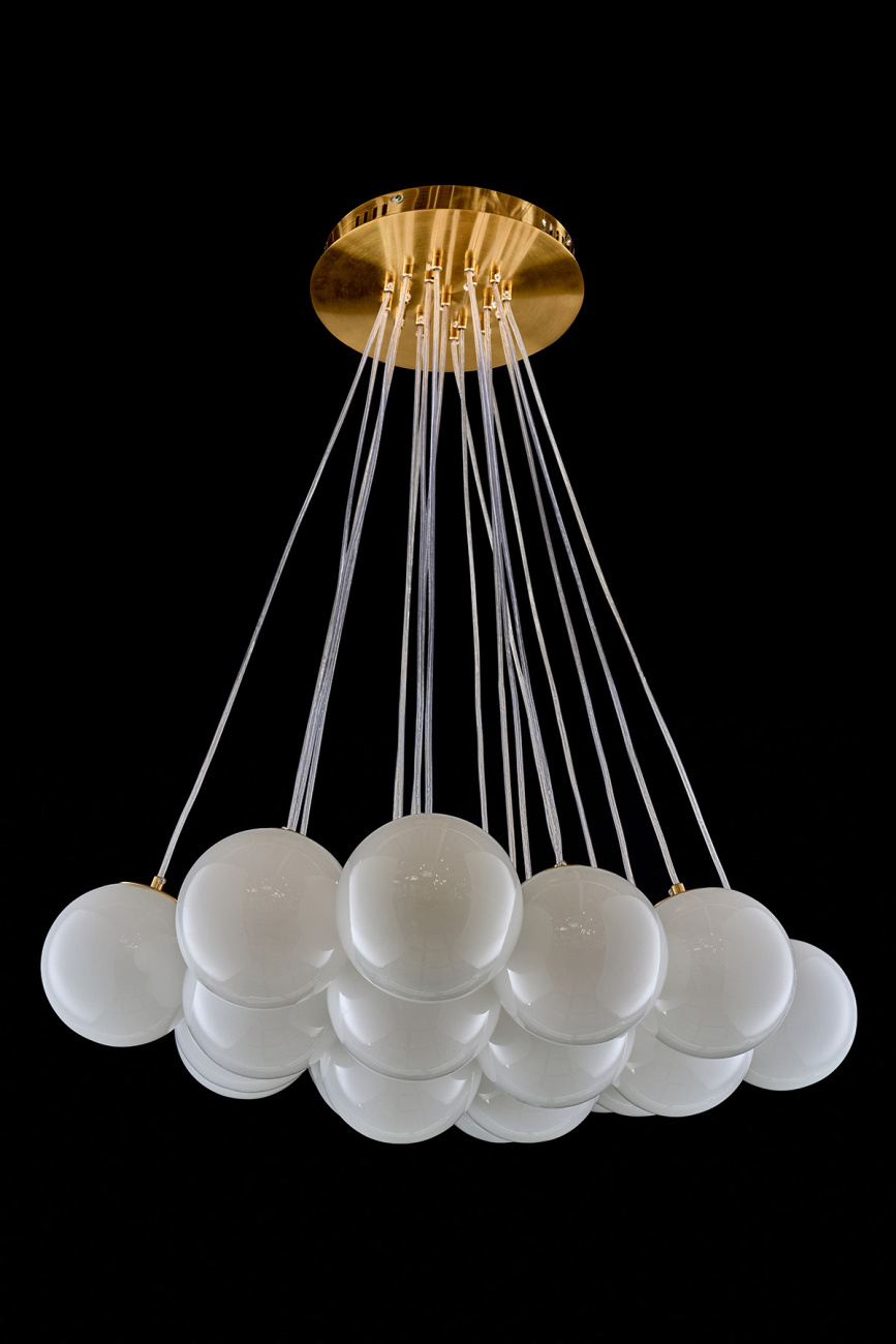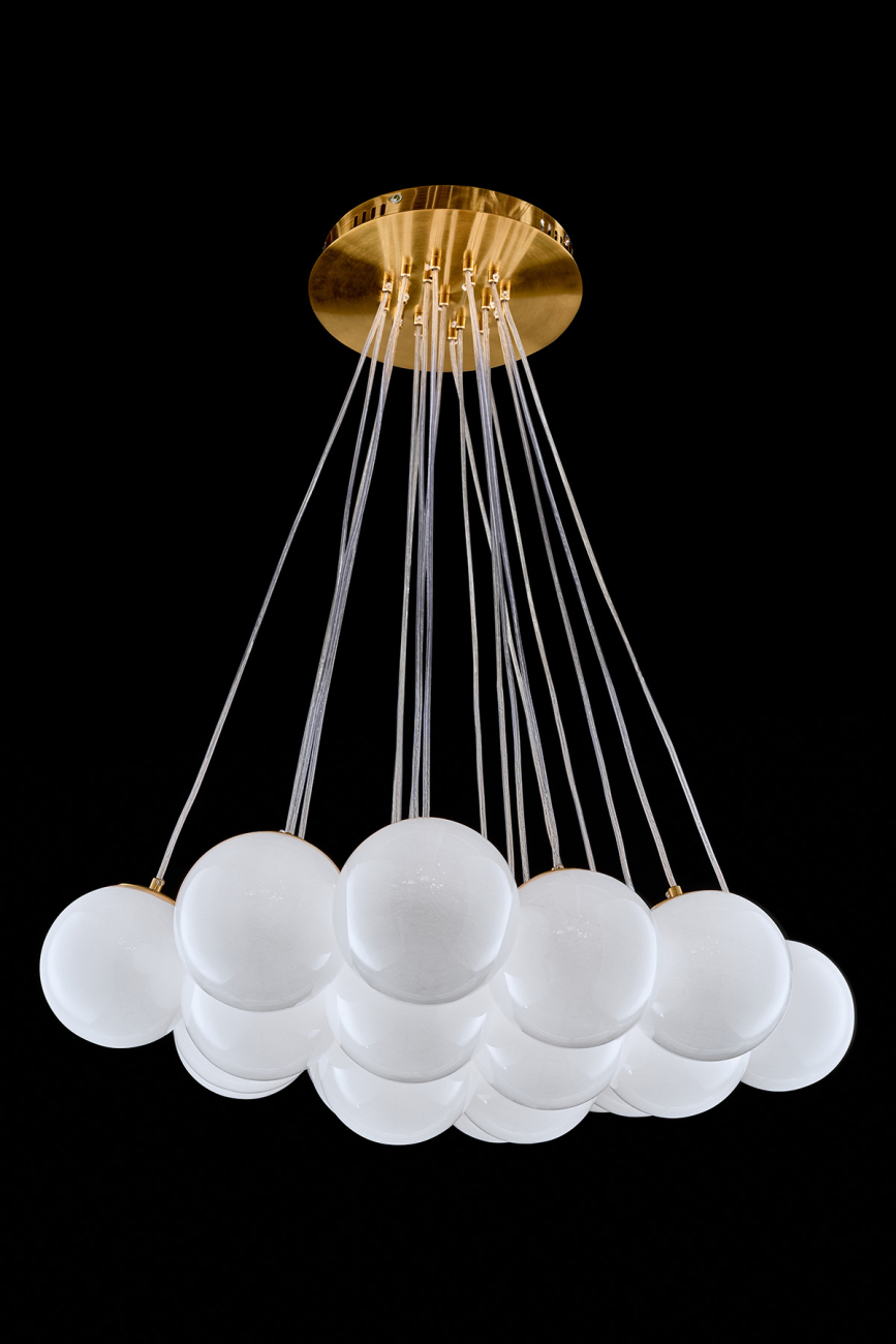 Допускается отличие страны-изготовителя, указанной в характеристиках. Линии производства могут находиться в нескольких государствах. Это не влияет на качество изготовления товара: все заводы данного бренда работают по общим стандартам, а готовые изделия проходят соответствующий контроль.Россия Коллекция Eve ЦветЦвет арматуры Латунь Цвет Латунь Материал арматуры Металл Цвет плафона Белый Материал плафона Стекло РазмерыВысота (мм) 1230 Длина (мм) 75 Диаметр (мм) 750 ЭлектрикаКоличество ламп (шт) 19 Цоколь G9 Дополнительная информацияВес (Кг) 9.26 -