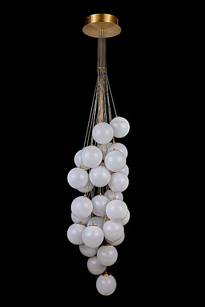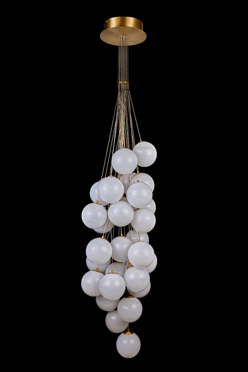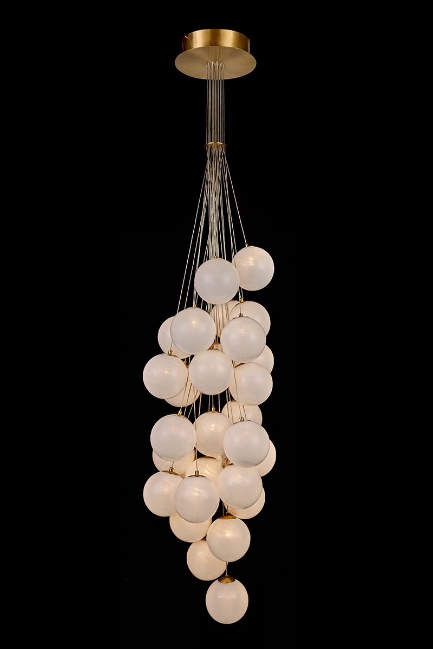 Допускается отличие страны-изготовителя, указанной в характеристиках. Линии производства могут находиться в нескольких государствах. Это не влияет на качество изготовления товара: все заводы данного бренда работают по общим стандартам, а готовые изделия проходят соответствующий контроль.Россия Коллекция Eve ЦветЦвет арматуры Латунь Цвет Латунь Материал арматуры Металл Цвет плафона Белый Материал плафона Стекло РазмерыВысота (мм) 1500 Длина (мм) 86 Диаметр (мм) 940 ЭлектрикаКоличество ламп (шт) 31 Цоколь G9 Дополнительная информацияВес (Кг) 28 -
