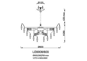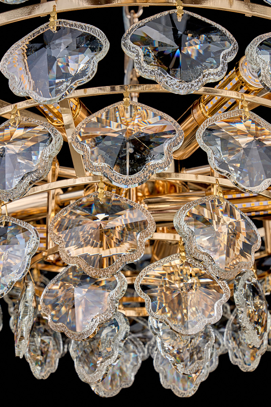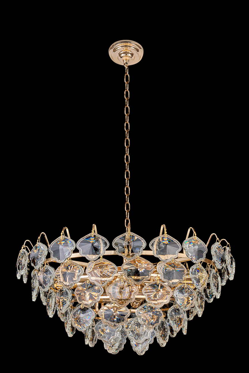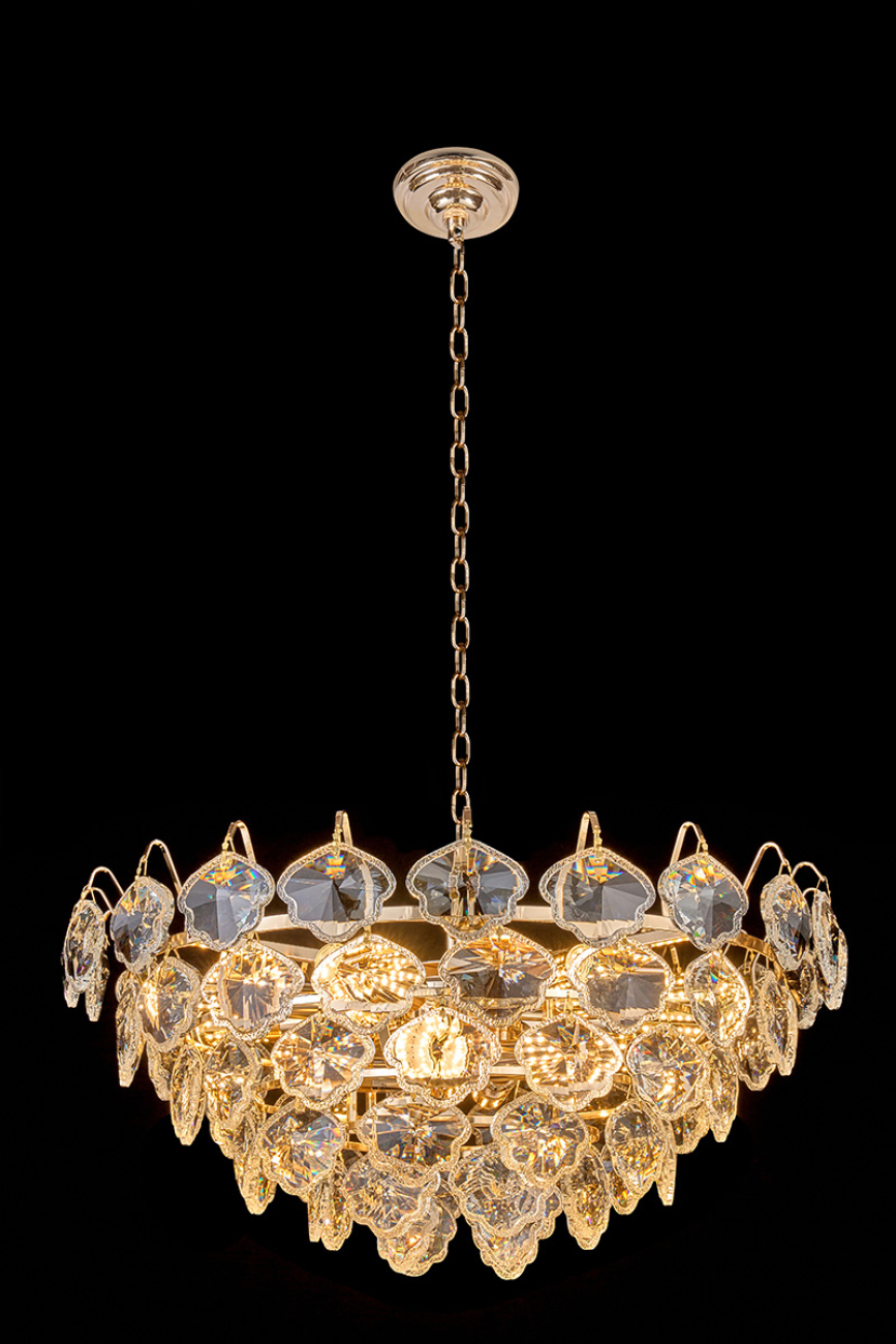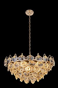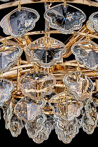 Допускается отличие страны-изготовителя, указанной в характеристиках. Линии производства могут находиться в нескольких государствах. Это не влияет на качество изготовления товара: все заводы данного бренда работают по общим стандартам, а готовые изделия проходят соответствующий контроль.Россия Коллекция Florence ЦветЦвет арматуры Золото Цвет Золото Материал арматуры Металл гальванизированный Цвет плафона прозрачный Материал плафона Хрусталь РазмерыВысота (мм) 700 Длина (мм) 65 Диаметр (мм) 600 ЭлектрикаКоличество ламп (шт) 12 Цоколь E14 Дополнительная информацияВес (Кг) 21.6 -