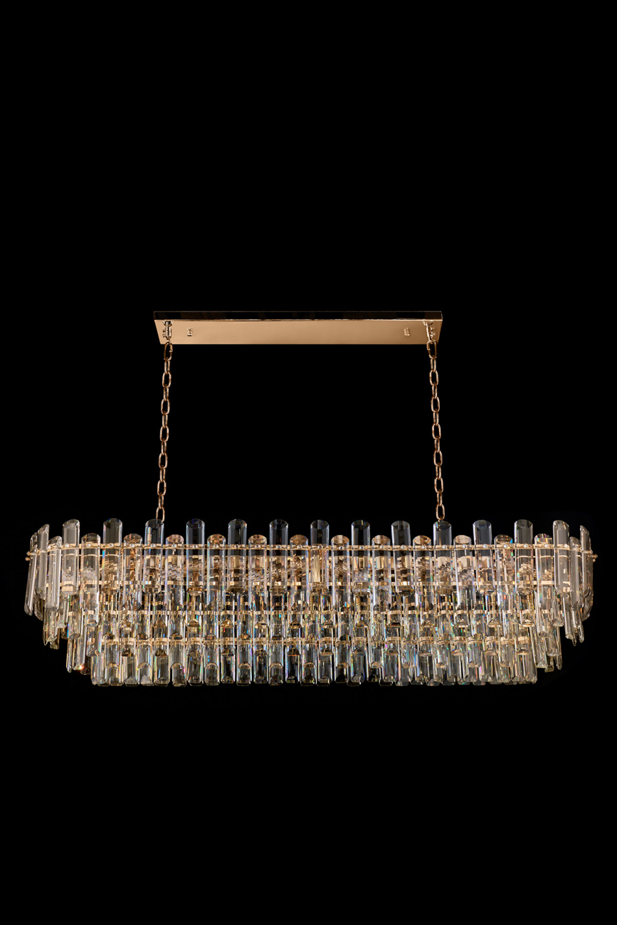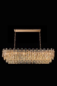 Допускается отличие страны-изготовителя, указанной в характеристиках. Линии производства могут находиться в нескольких государствах. Это не влияет на качество изготовления товара: все заводы данного бренда работают по общим стандартам, а готовые изделия проходят соответствующий контроль.Россия Коллекция Jacqueline ЦветЦвет арматуры Золото Цвет Золото Материал арматуры Металл гальванизированный Цвет плафона прозрачный Материал плафона Хрусталь РазмерыВысота (мм) 1500 Длина (мм) 120 Ширина (мм) 335 ЭлектрикаКоличество ламп (шт) 21 Цоколь E14 Дополнительная информацияВес (Кг) 4 13 -
