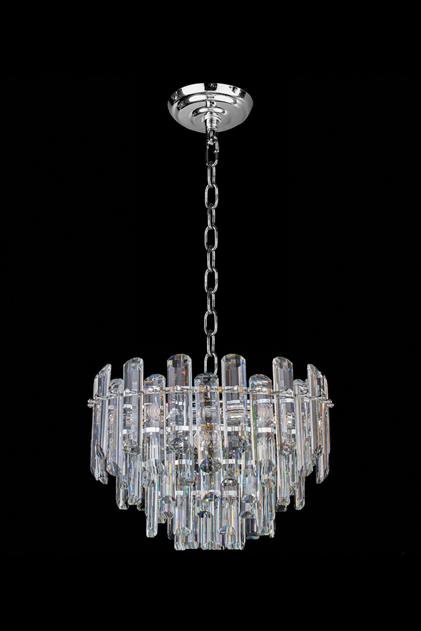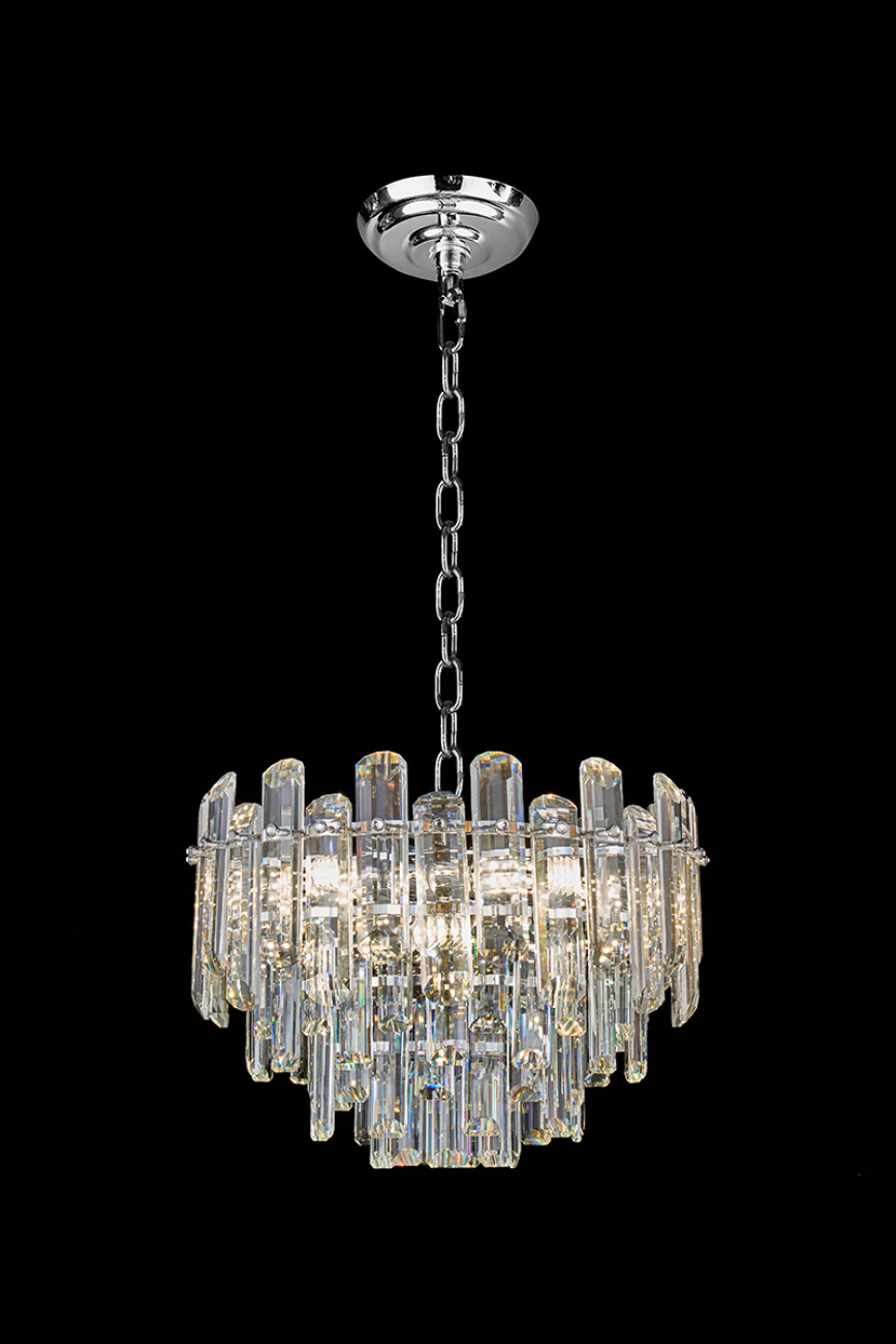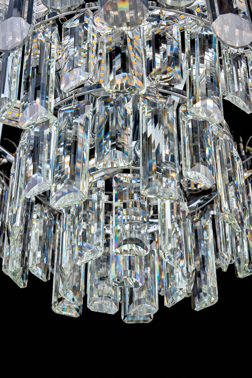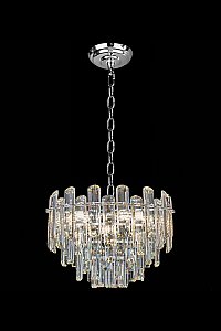 Допускается отличие страны-изготовителя, указанной в характеристиках. Линии производства могут находиться в нескольких государствах. Это не влияет на качество изготовления товара: все заводы данного бренда работают по общим стандартам, а готовые изделия проходят соответствующий контроль.Россия Коллекция Jacqueline ЦветЦвет арматуры Хром Цвет Хром Материал арматуры Металл гальванизированный Цвет плафона прозрачный Материал плафона Хрусталь РазмерыВысота (мм) 1480 Длина (мм) 41 Диаметр (мм) 400 ЭлектрикаКоличество ламп (шт) 8 Цоколь E14 Дополнительная информацияВес (Кг) 9 -