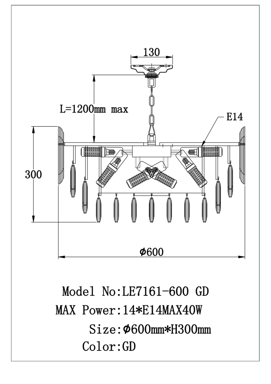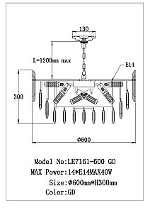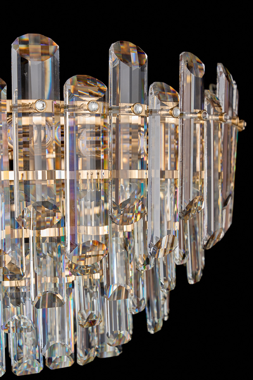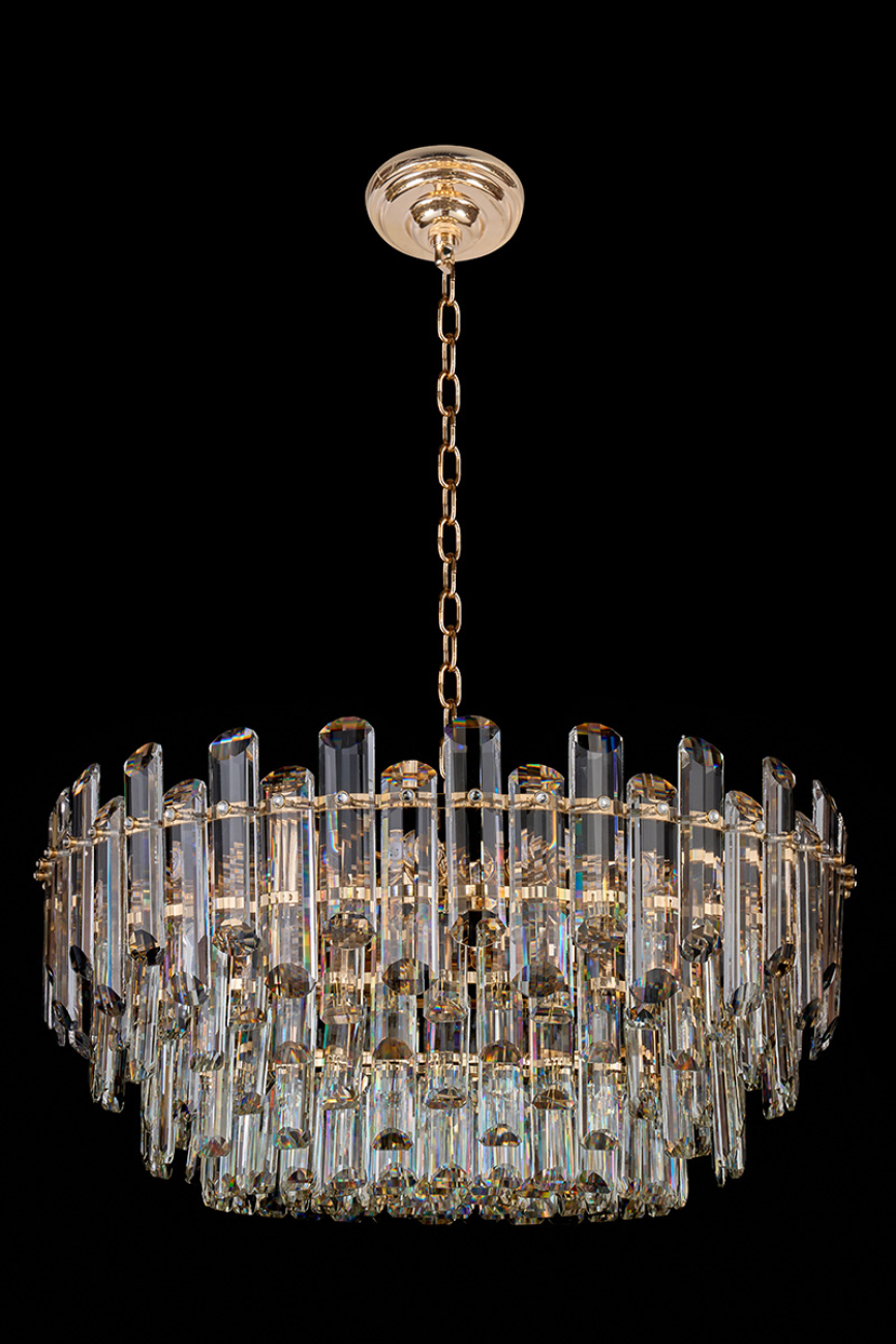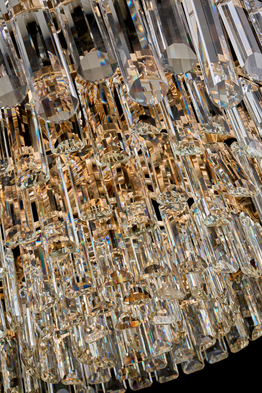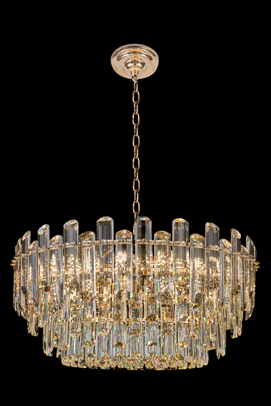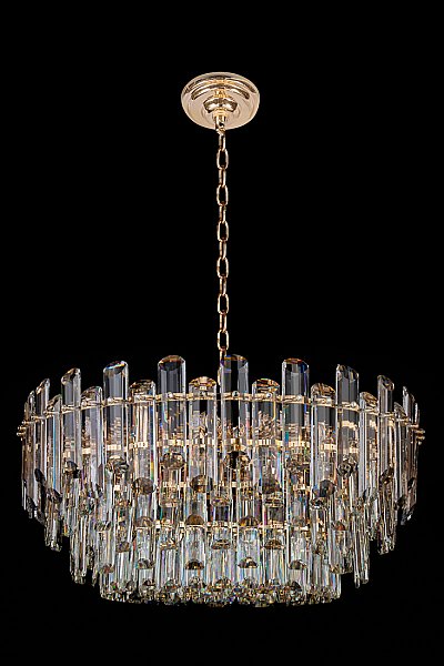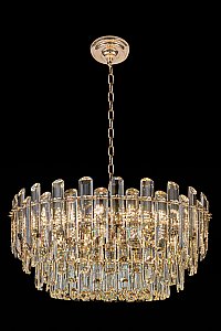 Допускается отличие страны-изготовителя, указанной в характеристиках. Линии производства могут находиться в нескольких государствах. Это не влияет на качество изготовления товара: все заводы данного бренда работают по общим стандартам, а готовые изделия проходят соответствующий контроль.Россия Коллекция Jacqueline ЦветЦвет арматуры Золото Цвет Золото Материал арматуры Металл гальванизированный Цвет плафона прозрачный Материал плафона Хрусталь РазмерыВысота (мм) 1500 Длина (мм) 56 Диаметр (мм) 600 ЭлектрикаКоличество ламп (шт) 14 Цоколь E14 Дополнительная информацияВес (Кг) 3; 5; 6 12 -