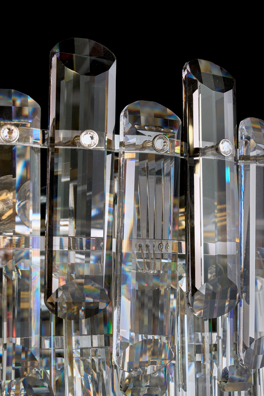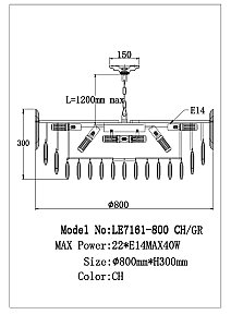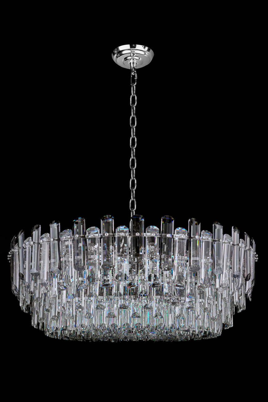Допускается отличие страны-изготовителя, указанной в характеристиках. Линии производства могут находиться в нескольких государствах. Это не влияет на качество изготовления товара: все заводы данного бренда работают по общим стандартам, а готовые изделия проходят соответствующий контроль.Россия Коллекция Jacqueline ЦветЦвет арматуры Хром Цвет Хром Материал арматуры Металл гальванизированный Цвет плафона прозрачный Материал плафона Хрусталь РазмерыВысота (мм) 1500 Длина (мм) 82 Диаметр (мм) 800 ЭлектрикаКоличество ламп (шт) 22 Цоколь E14 Дополнительная информацияВес (Кг) 5 14 -
