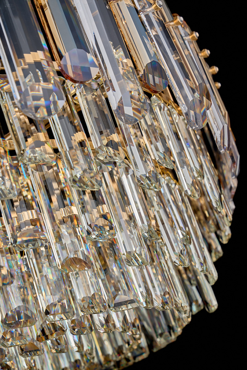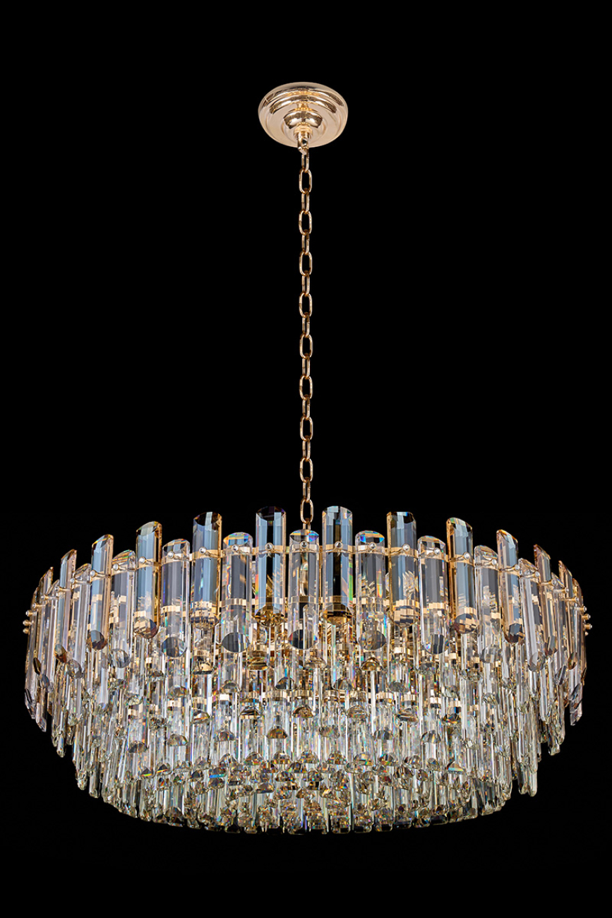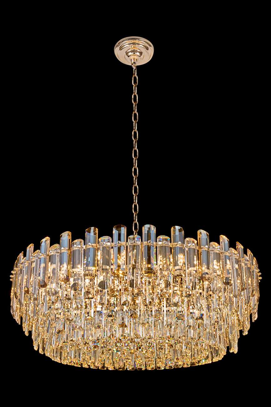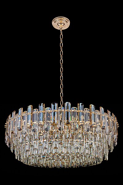 Допускается отличие страны-изготовителя, указанной в характеристиках. Линии производства могут находиться в нескольких государствах. Это не влияет на качество изготовления товара: все заводы данного бренда работают по общим стандартам, а готовые изделия проходят соответствующий контроль.Россия Коллекция Jacqueline ЦветЦвет арматуры Золото Цвет Золото Материал арматуры Металл гальванизированный Цвет плафона шампань Материал плафона Хрусталь РазмерыВысота (мм) 1500 Длина (мм) 82 Диаметр (мм) 800 ЭлектрикаКоличество ламп (шт) 22 Цоколь E14 Дополнительная информацияВес (Кг) 5 14 -