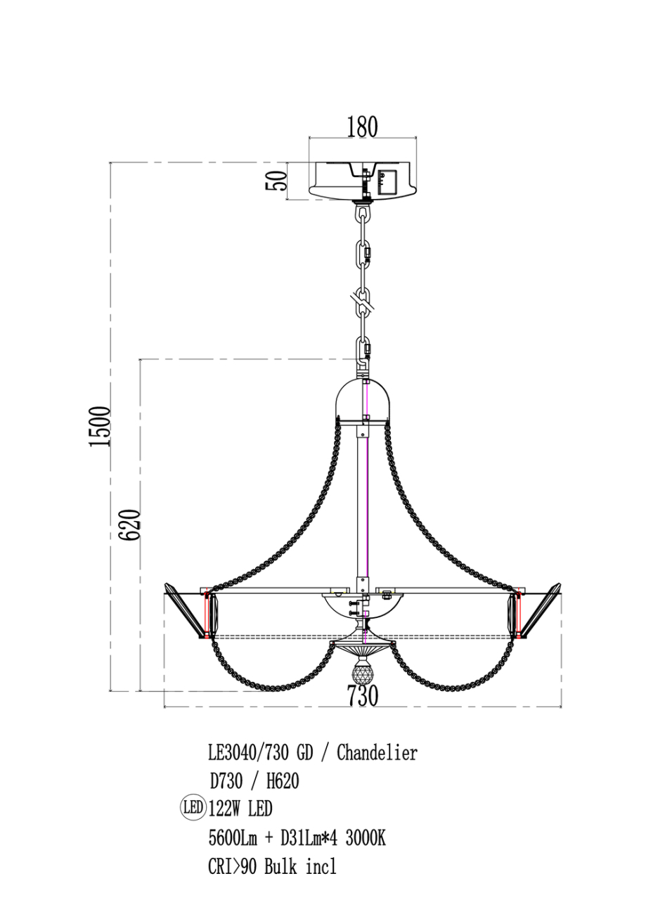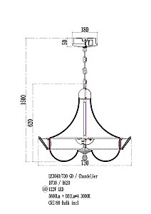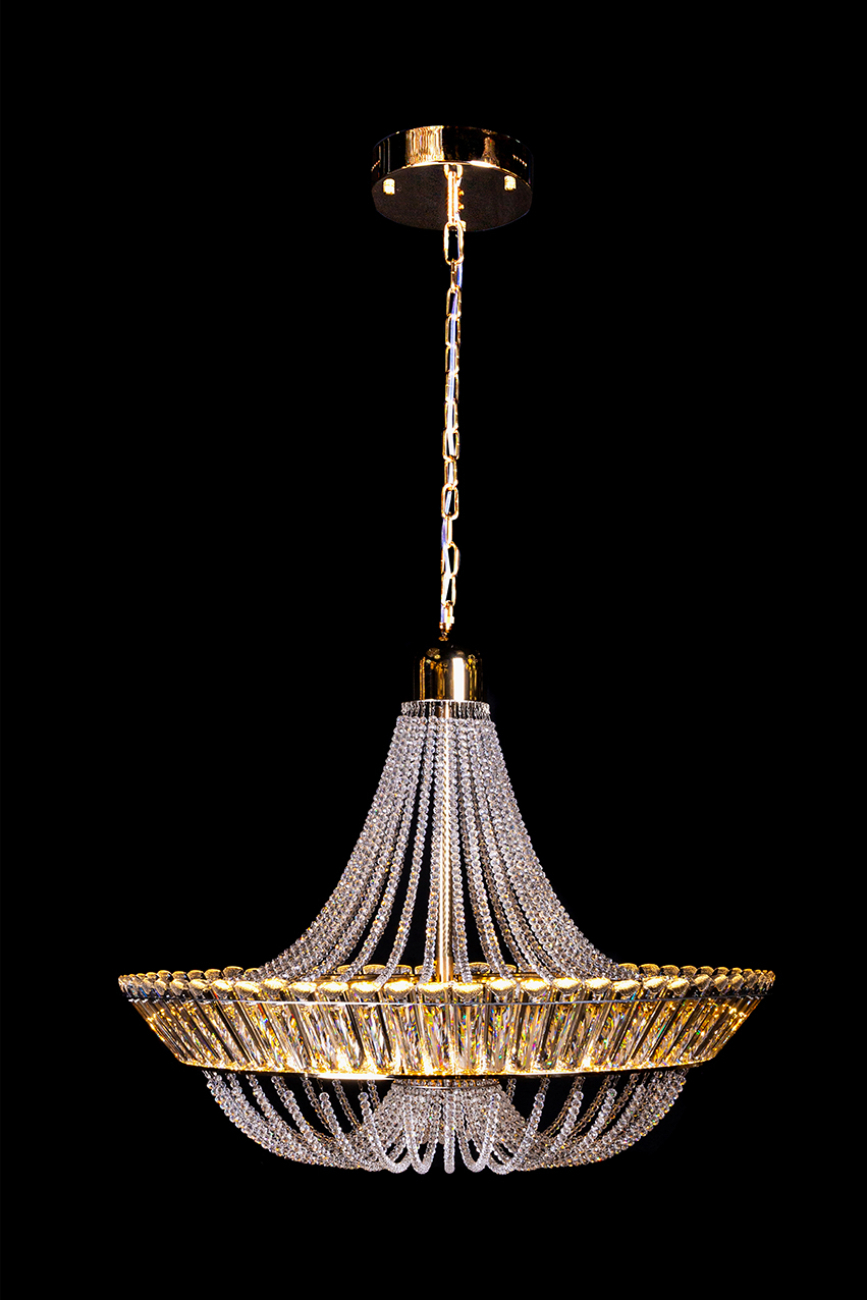 Допускается отличие страны-изготовителя, указанной в характеристиках. Линии производства могут находиться в нескольких государствах. Это не влияет на качество изготовления товара: все заводы данного бренда работают по общим стандартам, а готовые изделия проходят соответствующий контроль.Россия Коллекция Jade ЦветЦвет арматуры Золото Цвет Золото Материал арматуры Металл гальванизированный Цвет плафона прозрачный Материал плафона Хрусталь РазмерыВысота (мм) 1500 Длина (мм) 95 Диаметр (мм) 730 ЭлектрикаЦоколь LED Мощность лампы (Вт) 122 Световой поток 5600 Цветовая температура теплый (3000k) Дополнительная информацияВес (Кг) 9.8 -