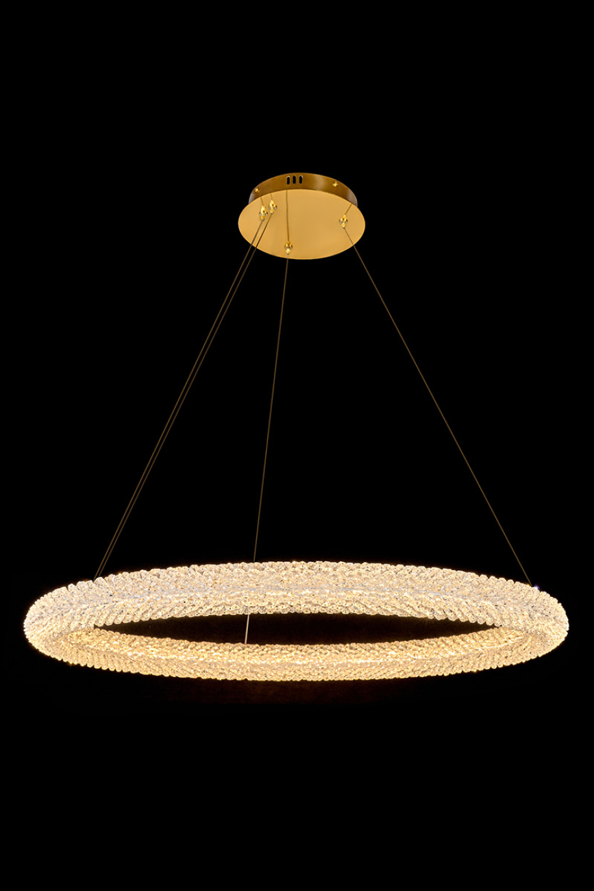 Допускается отличие страны-изготовителя, указанной в характеристиках. Линии производства могут находиться в нескольких государствах. Это не влияет на качество изготовления товара: все заводы данного бренда работают по общим стандартам, а готовые изделия проходят соответствующий контроль.Россия Коллекция Juliana ЦветЦвет арматуры Золото Цвет Золото Материал арматуры Металл гальванизированный Цвет плафона прозрачный Материал плафона Хрусталь РазмерыВысота (мм) 1500 Длина (мм) 87 Диаметр (мм) 800 ЭлектрикаЦоколь LED Мощность лампы (Вт) 50 Световой поток 3220 Цветовая температура теплый (3000k) Дополнительная информацияВес (Кг) 8.9 -