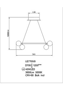 Допускается отличие страны-изготовителя, указанной в характеристиках. Линии производства могут находиться в нескольких государствах. Это не влияет на качество изготовления товара: все заводы данного бренда работают по общим стандартам, а готовые изделия проходят соответствующий контроль.Россия Коллекция Lilith ЦветЦвет арматуры Золото Цвет Золото Материал арматуры Металл гальванизированный Цвет плафона прозрачный Материал плафона Акрил РазмерыВысота (мм) 1200 Длина (мм) 68 Диаметр (мм) 700 ЭлектрикаЦоколь LED Мощность лампы (Вт) 40 Световой поток 3600 Цветовая температура нейтральный (4000k) Дополнительная информацияВес (Кг) 4.1 -