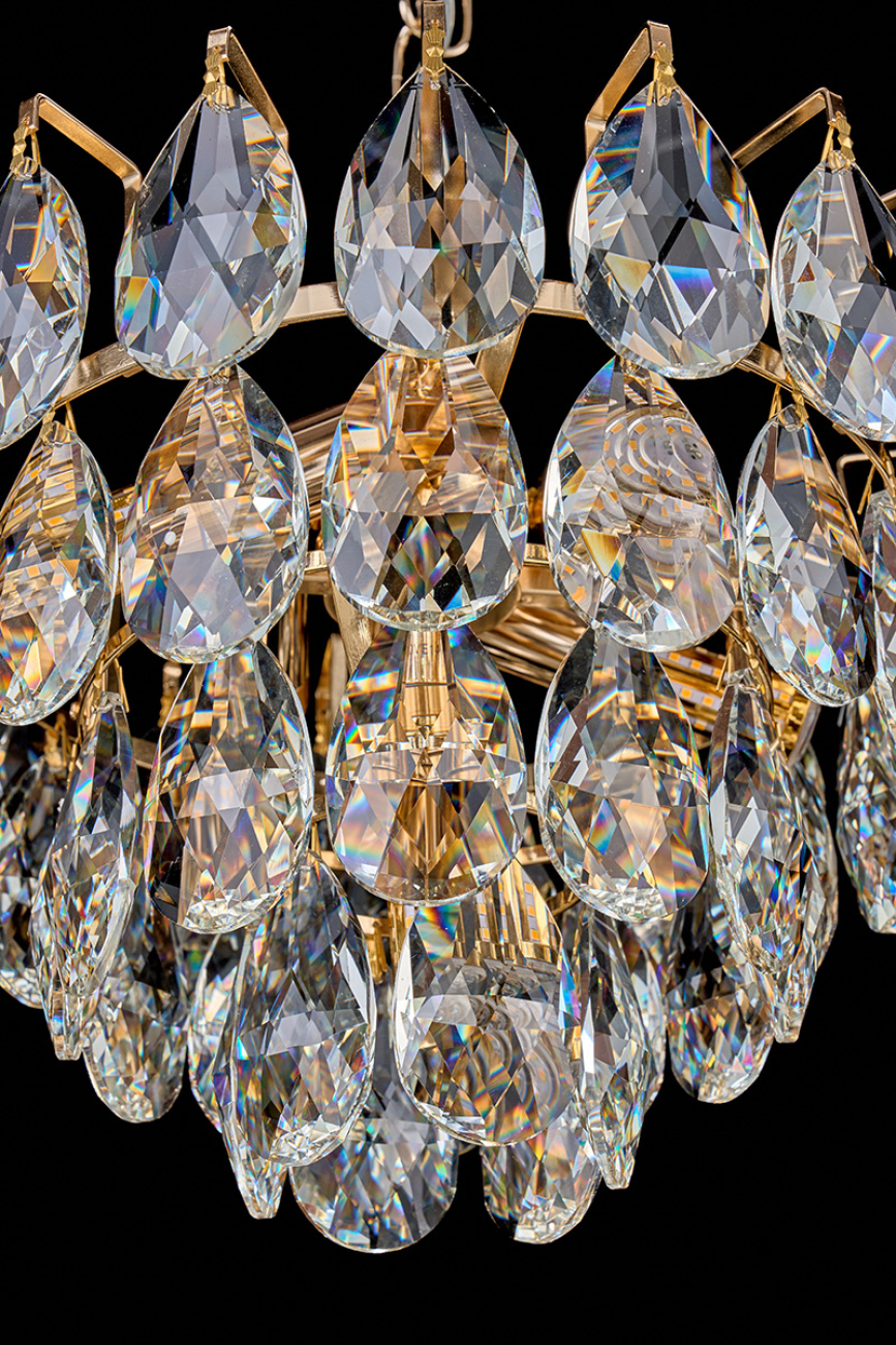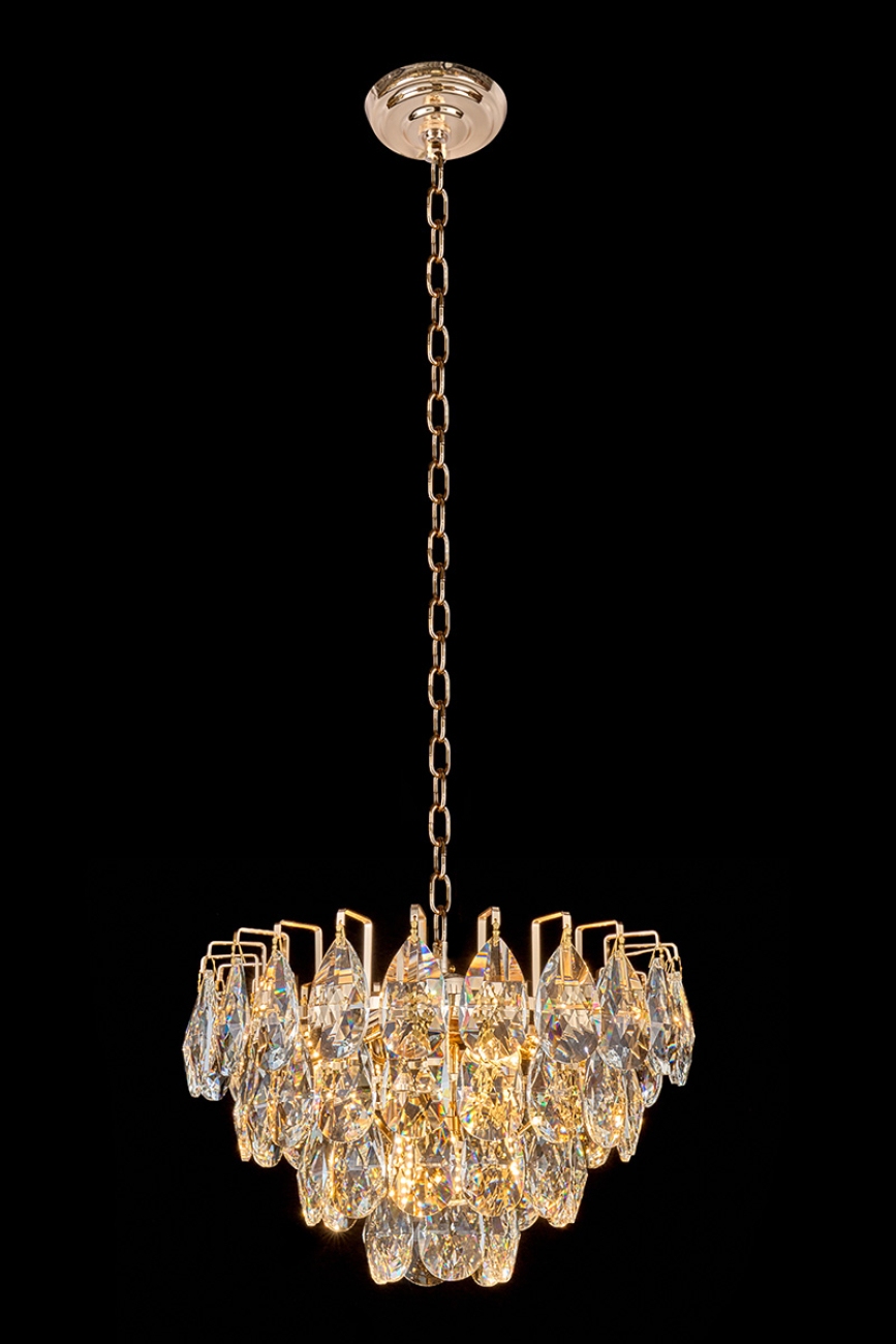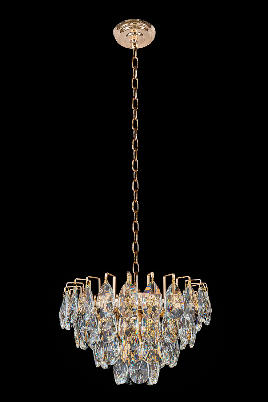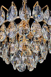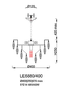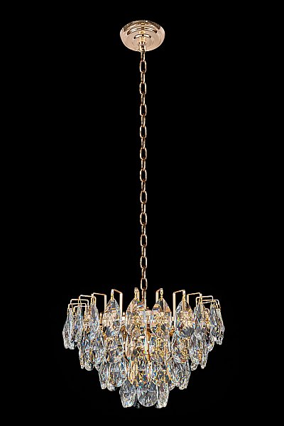 Допускается отличие страны-изготовителя, указанной в характеристиках. Линии производства могут находиться в нескольких государствах. Это не влияет на качество изготовления товара: все заводы данного бренда работают по общим стандартам, а готовые изделия проходят соответствующий контроль.Россия Коллекция Melanie ЦветЦвет арматуры Золото Цвет Золото Материал арматуры Металл гальванизированный Цвет плафона прозрачный Материал плафона Хрусталь РазмерыВысота (мм) 670 Длина (мм) 45 Диаметр (мм) 400 ЭлектрикаКоличество ламп (шт) 5 Цоколь E14 Дополнительная информацияВес (Кг) 8.7 -