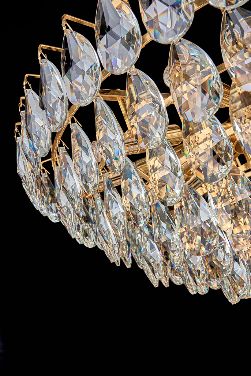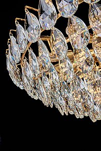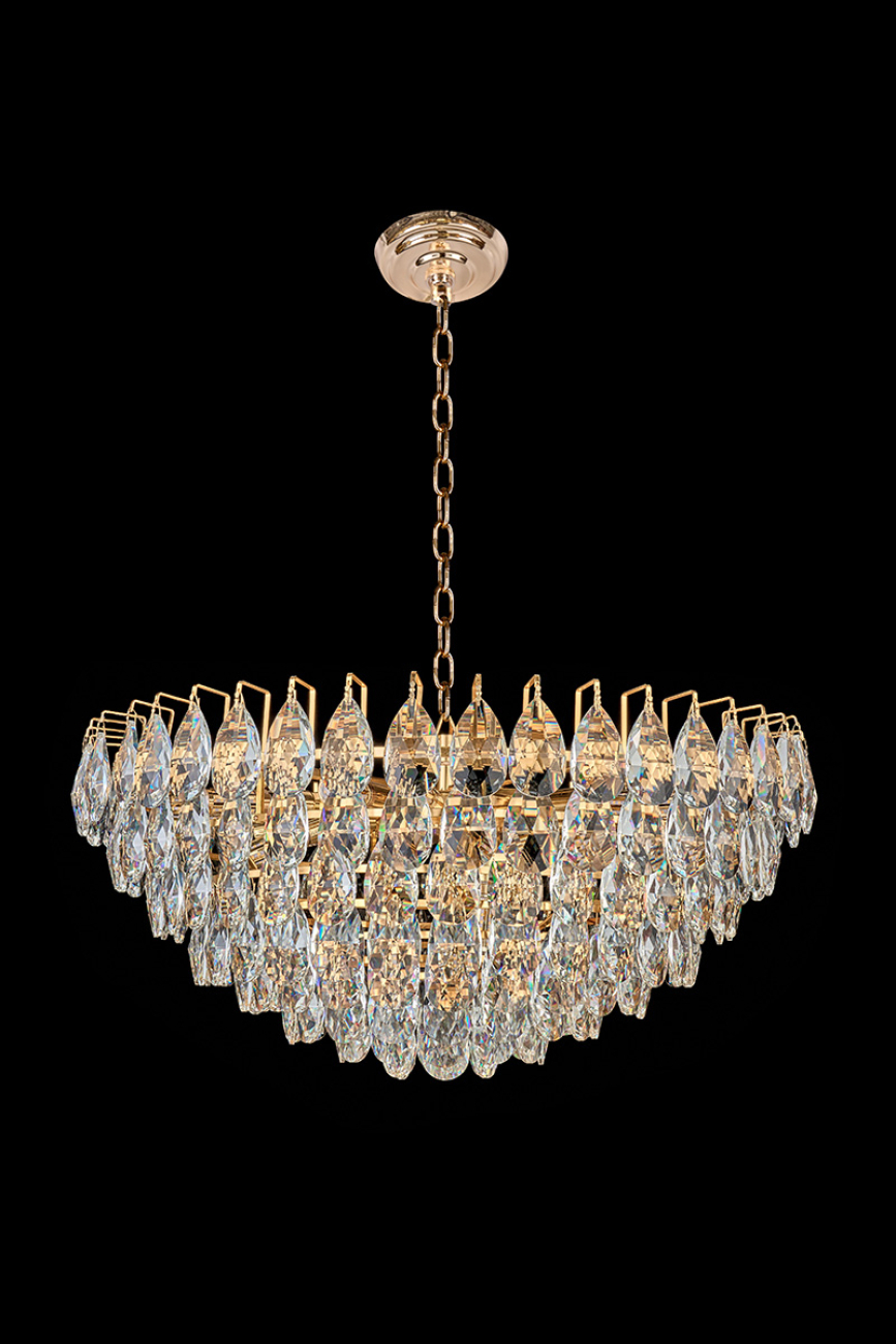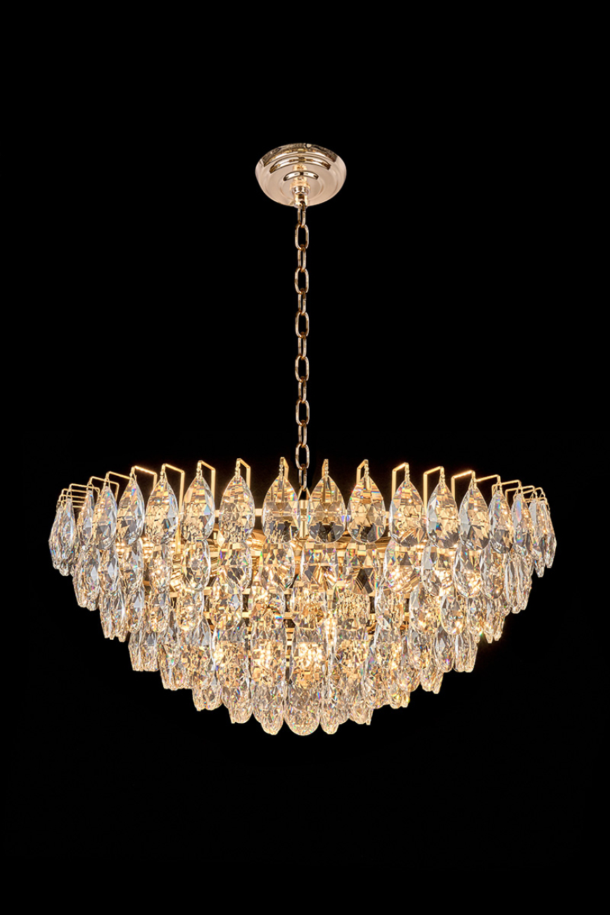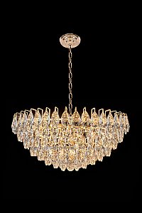 Допускается отличие страны-изготовителя, указанной в характеристиках. Линии производства могут находиться в нескольких государствах. Это не влияет на качество изготовления товара: все заводы данного бренда работают по общим стандартам, а готовые изделия проходят соответствующий контроль.Россия Коллекция Melanie ЦветЦвет арматуры Золото Цвет Золото Материал арматуры Металл гальванизированный Цвет плафона прозрачный Материал плафона Хрусталь РазмерыВысота (мм) 800 Длина (мм) 85 Диаметр (мм) 800 ЭлектрикаКоличество ламп (шт) 21 Цоколь E14 Дополнительная информацияВес (Кг) 24.7 -
