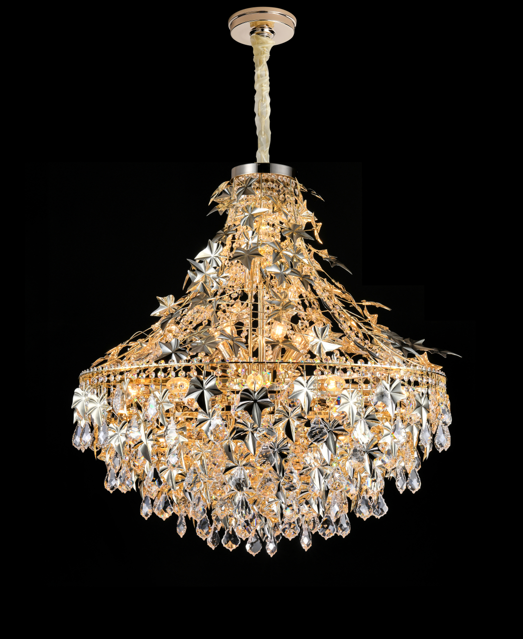 Допускается отличие страны-изготовителя, указанной в характеристиках. Линии производства могут находиться в нескольких государствах. Это не влияет на качество изготовления товара: все заводы данного бренда работают по общим стандартам, а готовые изделия проходят соответствующий контроль.Россия Коллекция Milena ЦветЦвет арматуры Золото Цвет Золото Материал арматуры Металл гальванизированный Цвет плафона золото Материал плафона Металл РазмерыВысота (мм) 1500 Длина (мм) 95 Диаметр (мм) 890 ЭлектрикаКоличество ламп (шт) 30 Цоколь E14 Дополнительная информацияВес (Кг) 28 -