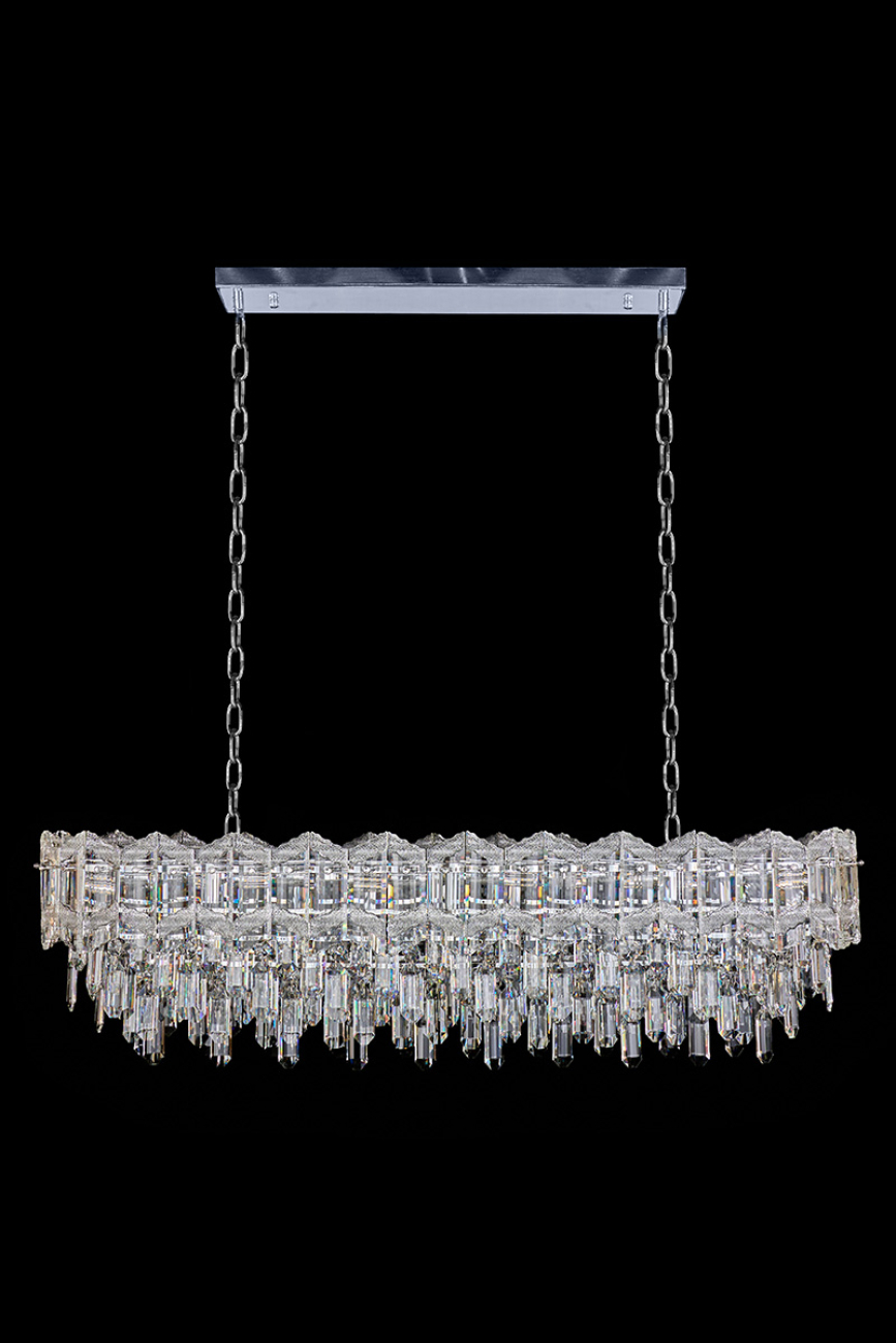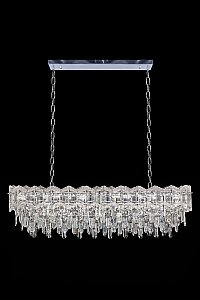 Допускается отличие страны-изготовителя, указанной в характеристиках. Линии производства могут находиться в нескольких государствах. Это не влияет на качество изготовления товара: все заводы данного бренда работают по общим стандартам, а готовые изделия проходят соответствующий контроль.Россия Коллекция Noemi ЦветЦвет арматуры Хром Цвет Хром Материал арматуры Металл гальванизированный Цвет плафона прозрачный Материал плафона Хрусталь РазмерыВысота (мм) 1535 Длина (мм) 120 Ширина (мм) 315 ЭлектрикаКоличество ламп (шт) 21 Цоколь E14 Дополнительная информацияВес (Кг) 4; 7 18 -