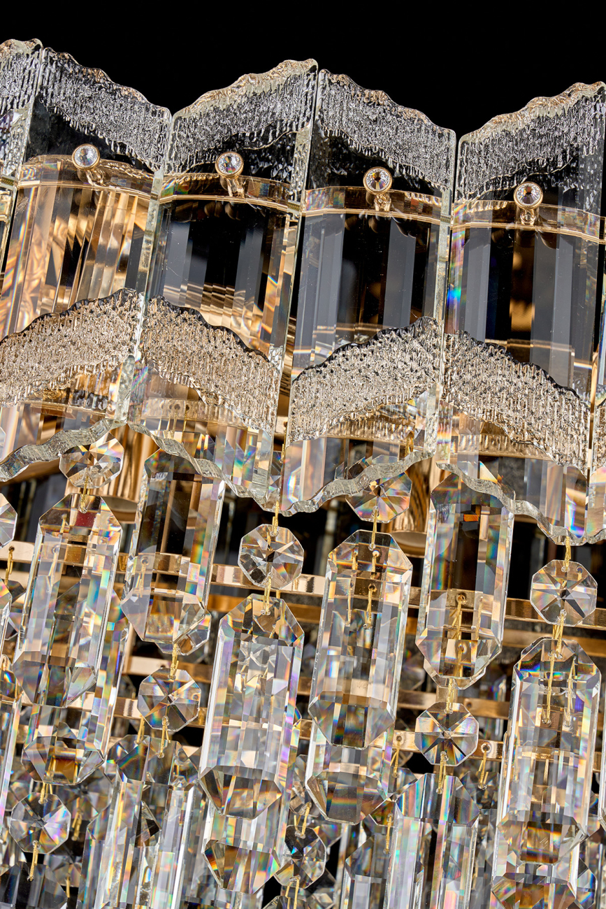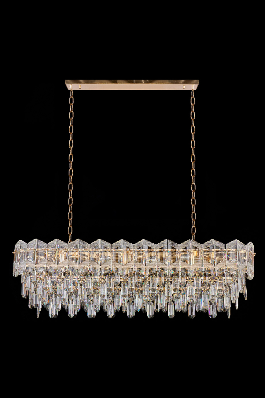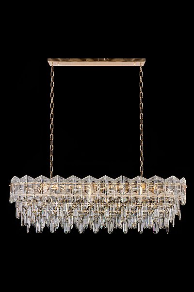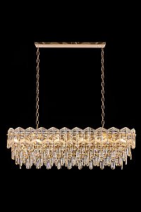 Допускается отличие страны-изготовителя, указанной в характеристиках. Линии производства могут находиться в нескольких государствах. Это не влияет на качество изготовления товара: все заводы данного бренда работают по общим стандартам, а готовые изделия проходят соответствующий контроль.Россия Коллекция Noemi ЦветЦвет арматуры Золото Цвет Золото Материал арматуры Металл гальванизированный Цвет плафона прозрачный Материал плафона Хрусталь РазмерыВысота (мм) 1535 Длина (мм) 120 Ширина (мм) 315 ЭлектрикаКоличество ламп (шт) 21 Цоколь E14 Дополнительная информацияВес (Кг) 4; 7 18 -