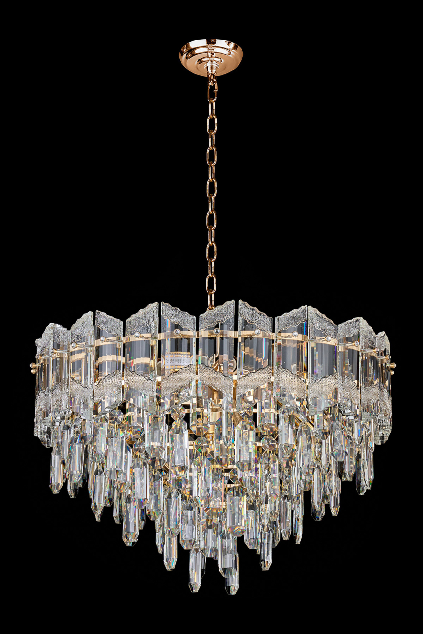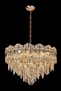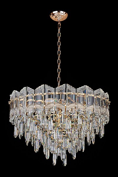 Допускается отличие страны-изготовителя, указанной в характеристиках. Линии производства могут находиться в нескольких государствах. Это не влияет на качество изготовления товара: все заводы данного бренда работают по общим стандартам, а готовые изделия проходят соответствующий контроль.Россия Коллекция Noemi ЦветЦвет арматуры Золото Цвет Золото Материал арматуры Металл гальванизированный Цвет плафона прозрачный Материал плафона Хрусталь РазмерыВысота (мм) 1535 Длина (мм) 41 Диаметр (мм) 400 ЭлектрикаКоличество ламп (шт) 8 Цоколь E14 Дополнительная информацияВес (Кг) 9.5 -