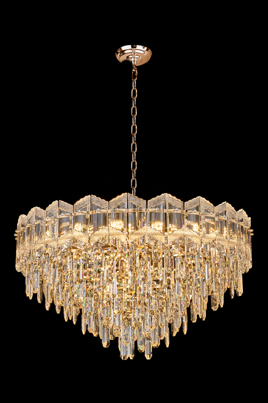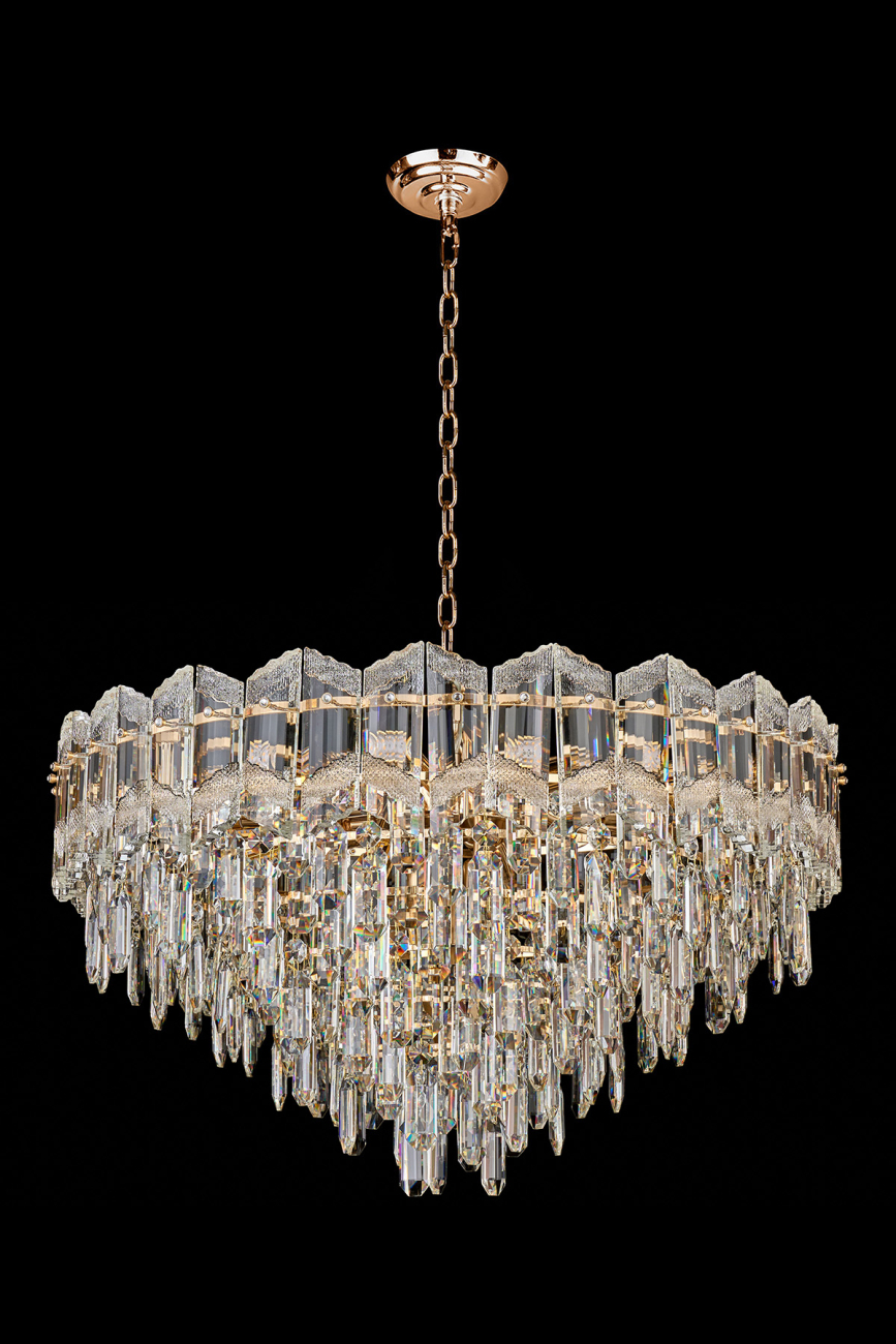 Допускается отличие страны-изготовителя, указанной в характеристиках. Линии производства могут находиться в нескольких государствах. Это не влияет на качество изготовления товара: все заводы данного бренда работают по общим стандартам, а готовые изделия проходят соответствующий контроль.Россия Коллекция Noemi ЦветЦвет арматуры Золото Цвет Золото Материал арматуры Металл гальванизированный Цвет плафона прозрачный Материал плафона Хрусталь РазмерыВысота (мм) 1640 Длина (мм) 82 Диаметр (мм) 800 ЭлектрикаКоличество ламп (шт) 22 Цоколь E14 Дополнительная информацияВес (Кг) 5; 5 16 -