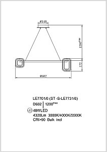 Допускается отличие страны-изготовителя, указанной в характеристиках. Линии производства могут находиться в нескольких государствах. Это не влияет на качество изготовления товара: все заводы данного бренда работают по общим стандартам, а готовые изделия проходят соответствующий контроль.Россия Коллекция Theona ЦветЦвет арматуры Серый Цвет Черный Материал арматуры Металл гальванизированный Цвет плафона черный хром Материал плафона Металл РазмерыВысота (мм) 1372 Длина (мм) 68 Диаметр (мм) 602 ЭлектрикаЦоколь LED Мощность лампы (Вт) 48 Световой поток 4320 Цветовая температура нейтральный (4000k) Дополнительная информацияВес (Кг) 5 -