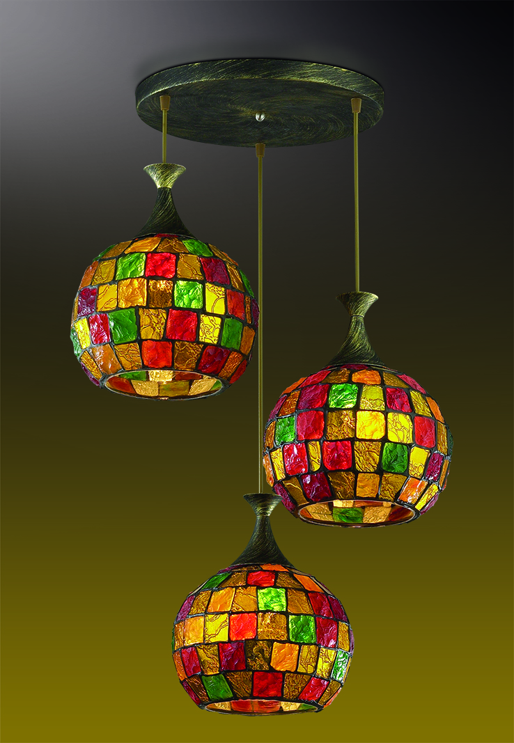 Допускается отличие страны-изготовителя, указанной в характеристиках. Линии производства могут находиться в нескольких государствах. Это не влияет на качество изготовления товара: все заводы данного бренда работают по общим стандартам, а готовые изделия проходят соответствующий контроль.Италия Коллекция Velute ЦветЦвет арматуры Коричневый Цвет Разноцветные Материал арматуры Металл Цвет плафона разноцветная мозаика Материал плафона Стекло РазмерыВысота (мм) 900 Диаметр (мм) 560 Ширина (мм) 560 ЭлектрикаКоличество ламп (шт) 3 Цоколь E27 Тип лампы Накаливания, Энергосберегающая (КЛЛ) Лампочки в комплекте Нет в комплекте Мощность лампы (Вт) 60 Напряжение (В) 220 Дополнительная информацияСтепень защиты (IP) IP20 Тип подвеса На тросах Количество подвесов Много подвесных элементов -