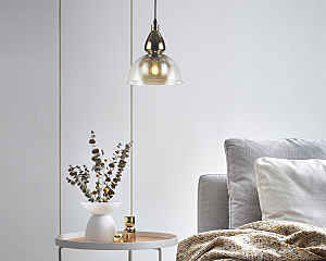 Подвесной светильник 1х60Вт Е27, металл/стекло, золото/прозрачное стекло/янтарное стекло