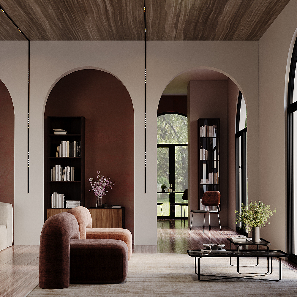 Металлический корпус, цвет - черный. Оптическая система и конструктив светильника создают эффект "света из ниоткуда" - яркого освещенного объекта в поле действия луча и скрытого источника света самого светильника одновременно. Идеален для акцентной подсветки. При использовании стандартных блоков питания без функции управления, светильники при установке в трек одной стороной имеют цветовую температуру 3000K, а при установке другой стороной - 6000К. Светильники поддерживают функцию группового диммирования и регулировки цветовой температуры при использовании блоков питания по протоколам Bluetooth Mesh или DALI. Светильники данной серии совместимы с трековой системой Basity.