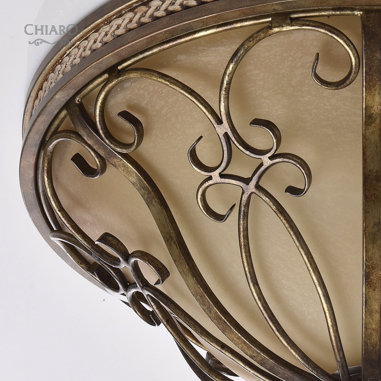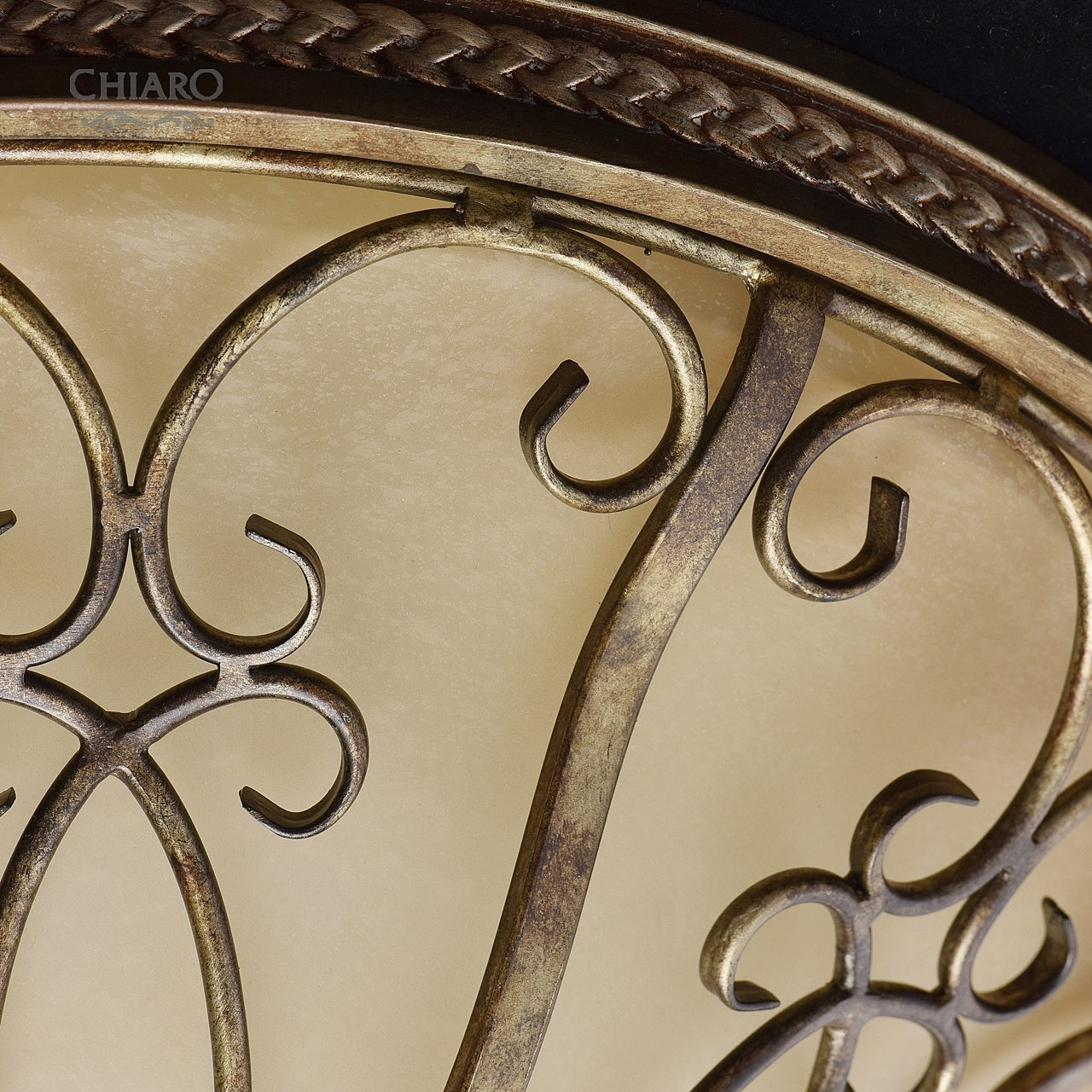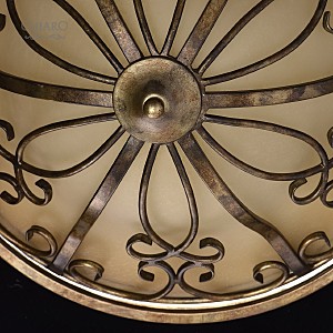Благодаря золотой цветовой гамме, яркий запоминающийся образ светильника Айвенго напоминает сияющее солнце, озаряющее пространство своим блеском и светом! В центре композиции - глубокий стеклянный плафон из декоративного матированного стекла, огранённый ажурным металлическим узором. В окружении центральной чаши располагаются шесть парящих плафонов, торжественно возвышающихся на рожках замысловатого дизайна. Завершающим декором стала изящная металлическая сетка, венчающая коронный образ роскошного светильника