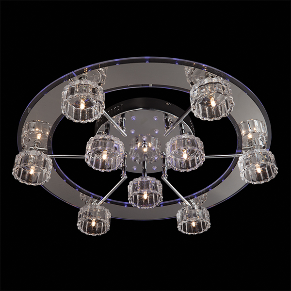 Допускается отличие страны-изготовителя, указанной в характеристиках. Линии производства могут находиться в нескольких государствах. Это не влияет на качество изготовления товара: все заводы данного бренда работают по общим стандартам, а готовые изделия проходят соответствующий контроль.Китай Коллекция 4975 ЦветЦвет арматуры Хром Цвет Хром Материал арматуры Металл Цвет плафона прозрачный Материал плафона Стекло РазмерыВысота (мм) 150 Длина (мм) 620 Ширина (мм) 620 ЭлектрикаКоличество ламп (шт) 9 Цоколь G4 Мощность лампы (Вт) 20 Дополнительная информацияВес (Кг) 6.55 кг Тип управления Пульт ДУ -