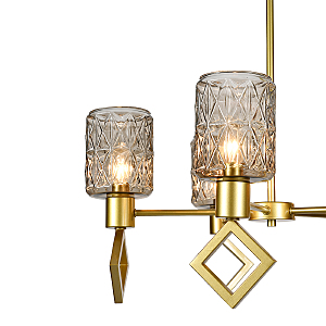 Допускается отличие страны-изготовителя, указанной в характеристиках. Линии производства могут находиться в нескольких государствах. Это не влияет на качество изготовления товара: все заводы данного бренда работают по общим стандартам, а готовые изделия проходят соответствующий контроль.Великобритания Коллекция Preda ЦветЦвет арматуры Золото Цвет Золото Материал арматуры Металл Цвет декора золото Цвет плафона дымчатый Материал декора Металл Материал плафона Стекло РазмерыВысота (мм) 1190 Длина (мм) 640 Высота минимальная (мм) 590 Ширина (мм) 640 Диаметр врезного отверстия (мм) 120 Высота абажура-плафона 155 ЭлектрикаКоличество ламп (шт) 5 Цоколь E14 Мощность лампы (Вт) 40 Напряжение (В) 220 Площадь освещения 10 Дополнительная информацияСпособ крепления Планка Степень защиты (IP) IP20 Вес (Кг) 3.3 -