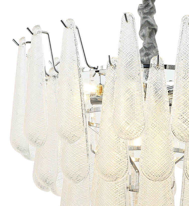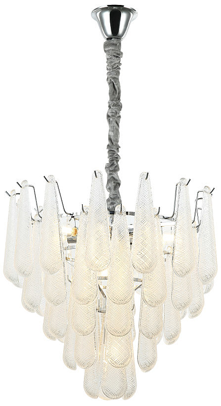 Люстра подвесная хрустальная 2122/09/13P Stilfort серии Prefecto - роскошная модель в стиле модерн. Арматура, изготовленная из металла в цветовом исполнении "хром", украшена хрустальными каплевидными декоративными элементами.