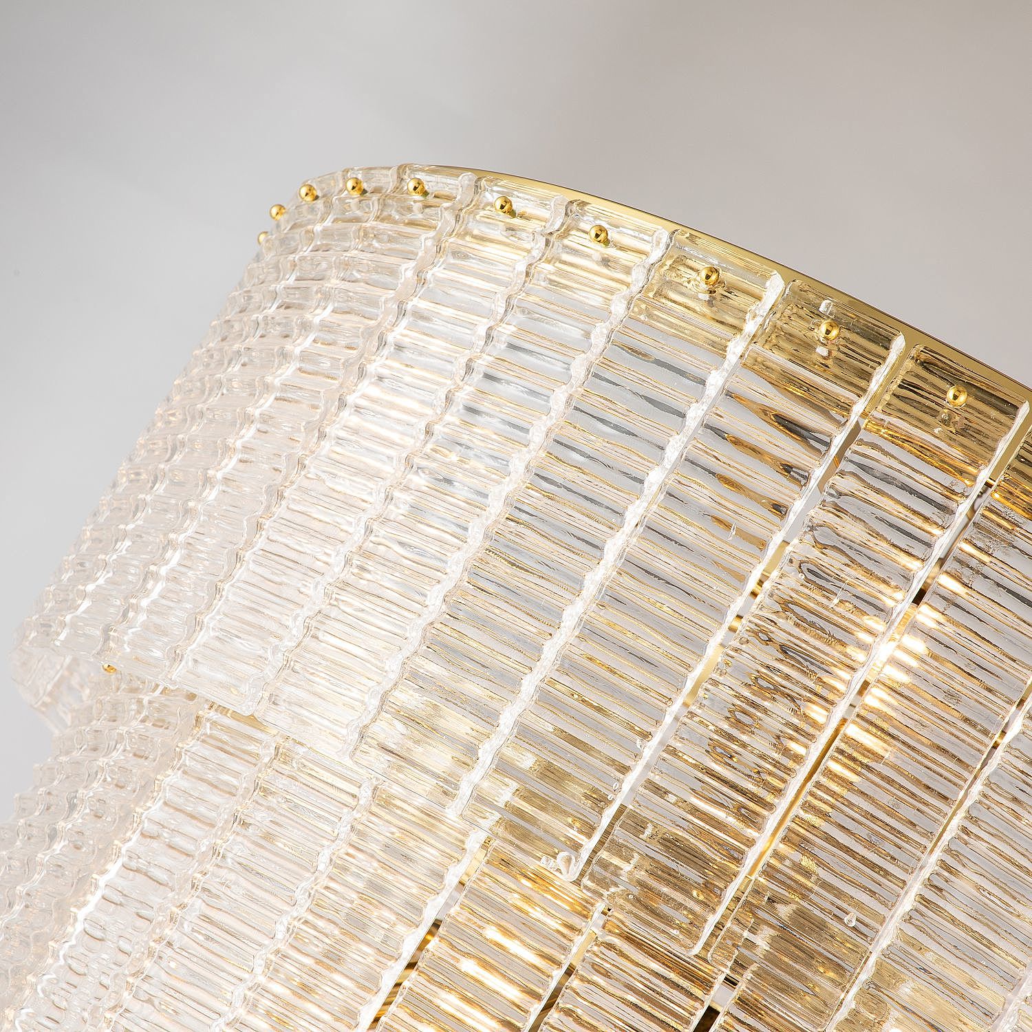 каркас цвета золото, плафоны из стекла прозрачного цвета