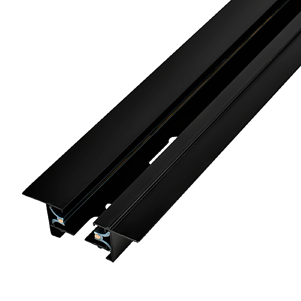 Встраиваемый шинопровод для однофазной трековой системы, ввод питания и заглушка в комплекте, металл/медь, черный, 1 метр