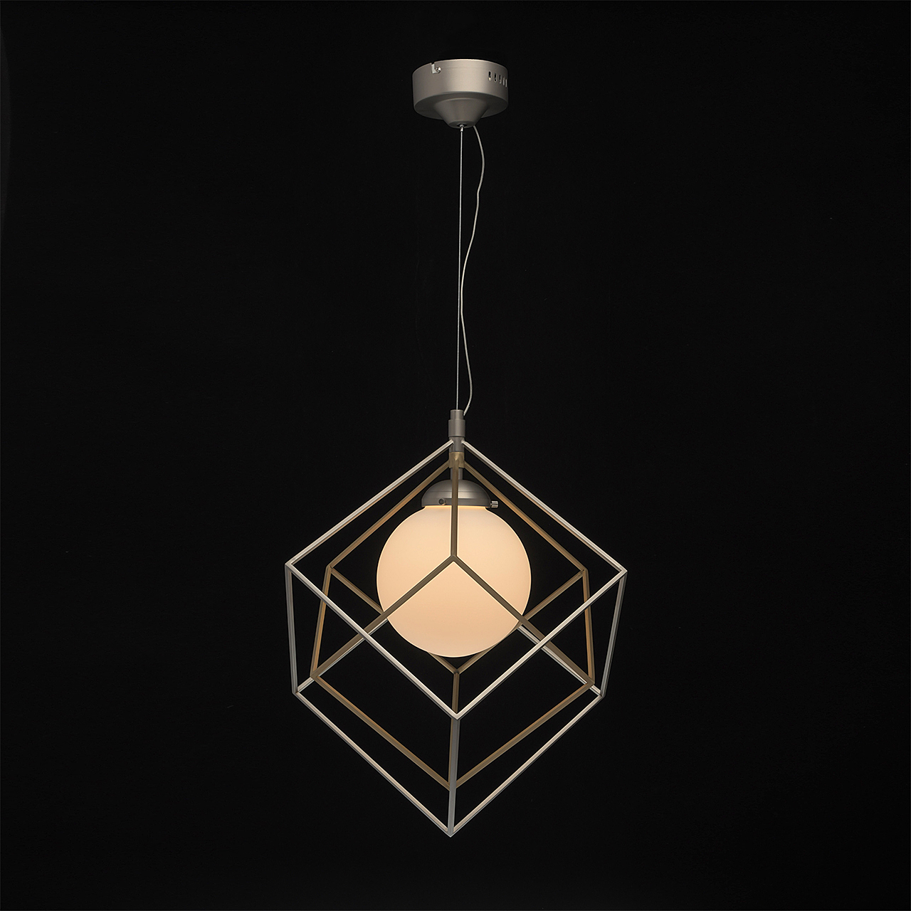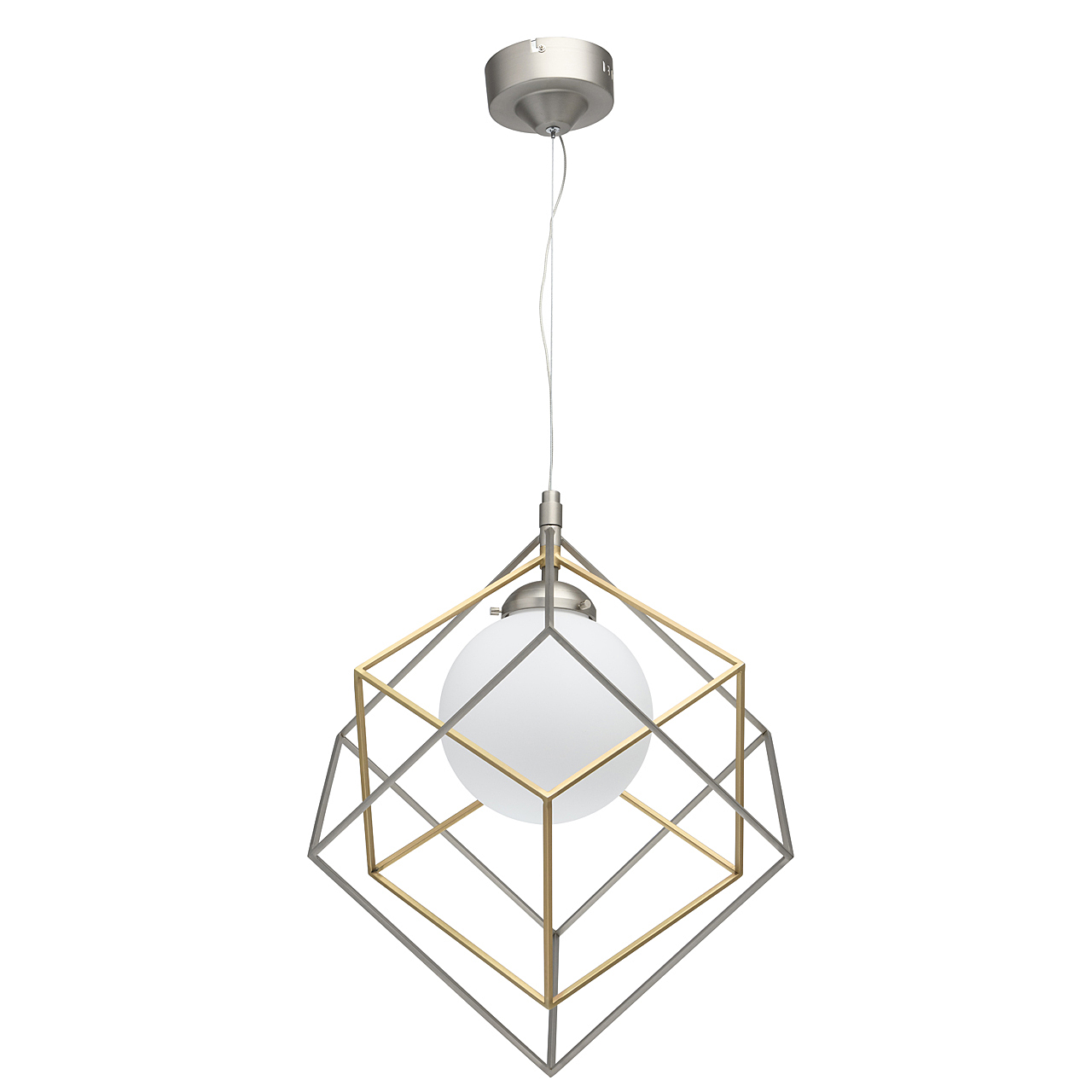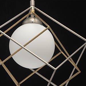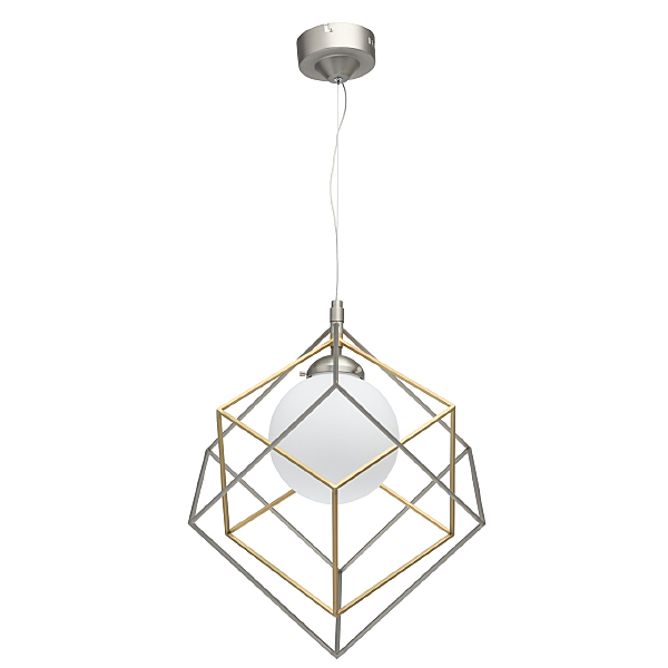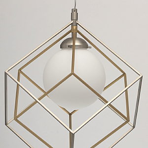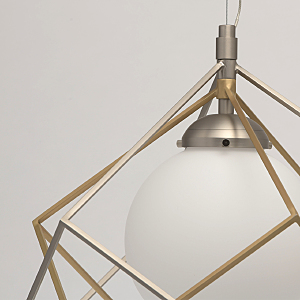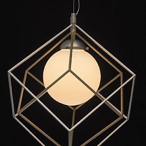 Минималистичный и, вместе с тем, очень оригинальный дизайн светильника будет отлично смотреться в современном интерьере. Металлическое основание цвета матового никеля создает гармоничный дуэт с оригинальным двойным плафоном: его внутренная часть сферической формы выполнена из белого стекла и окутана замысловатым переплетением графичных металлических элементов. Они представлены в комбинации двух оттенков - матового никеля и бронзы. Трендовая палитра, нетривиальный дизайн создают очень эффектный тандем.