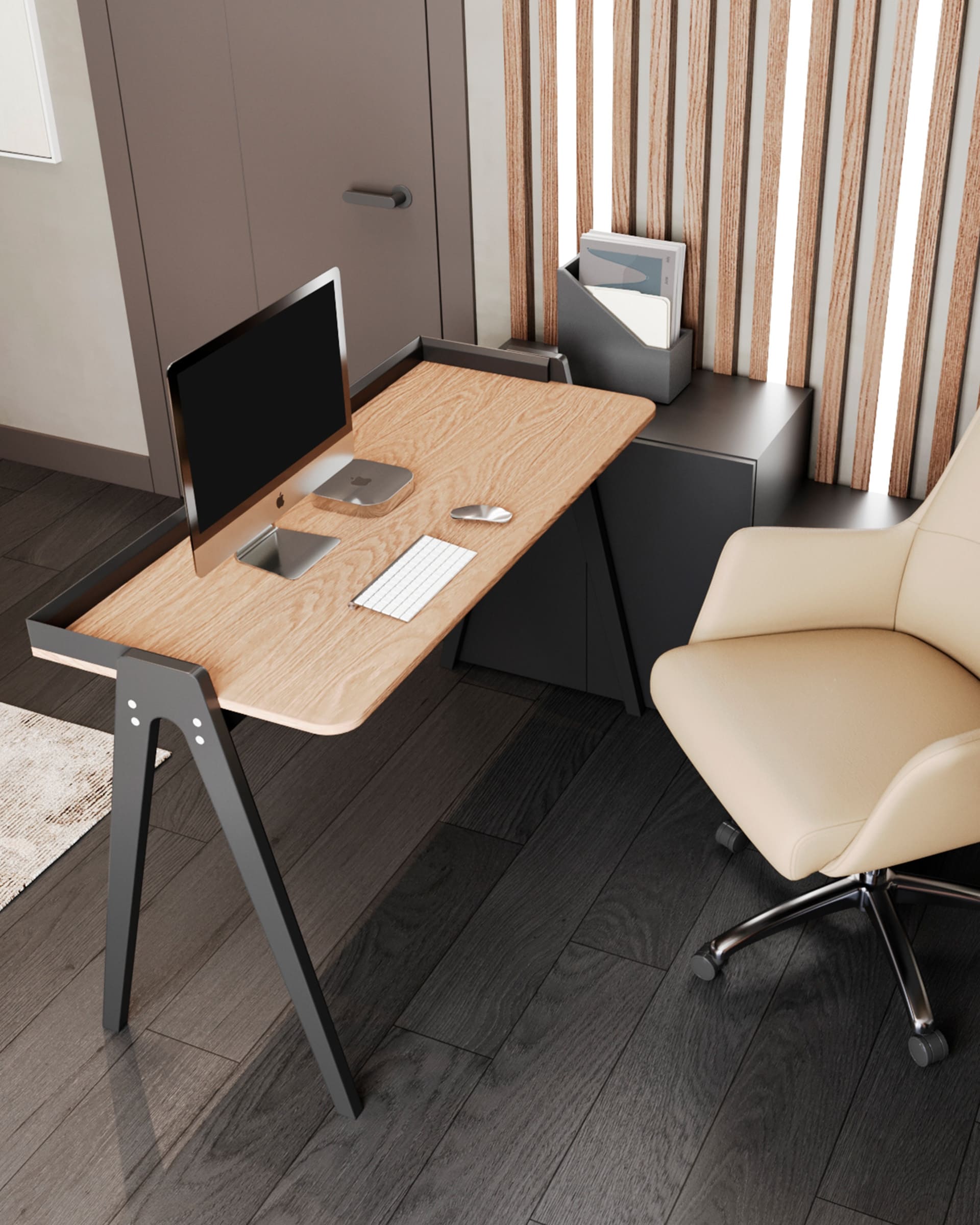 Стол письменный Pyramid 118*53 светлое дерево/черный каркас из массива дерева