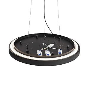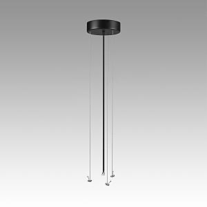 Тросы подвесного крепление для модели QUASAR LED выполнены из металла в приятной на ощупь силиконовой оплетке. Питающий провод и потолочная чаша выполнены в цвете внешнего контура корпуса светильника - угольно-черном.