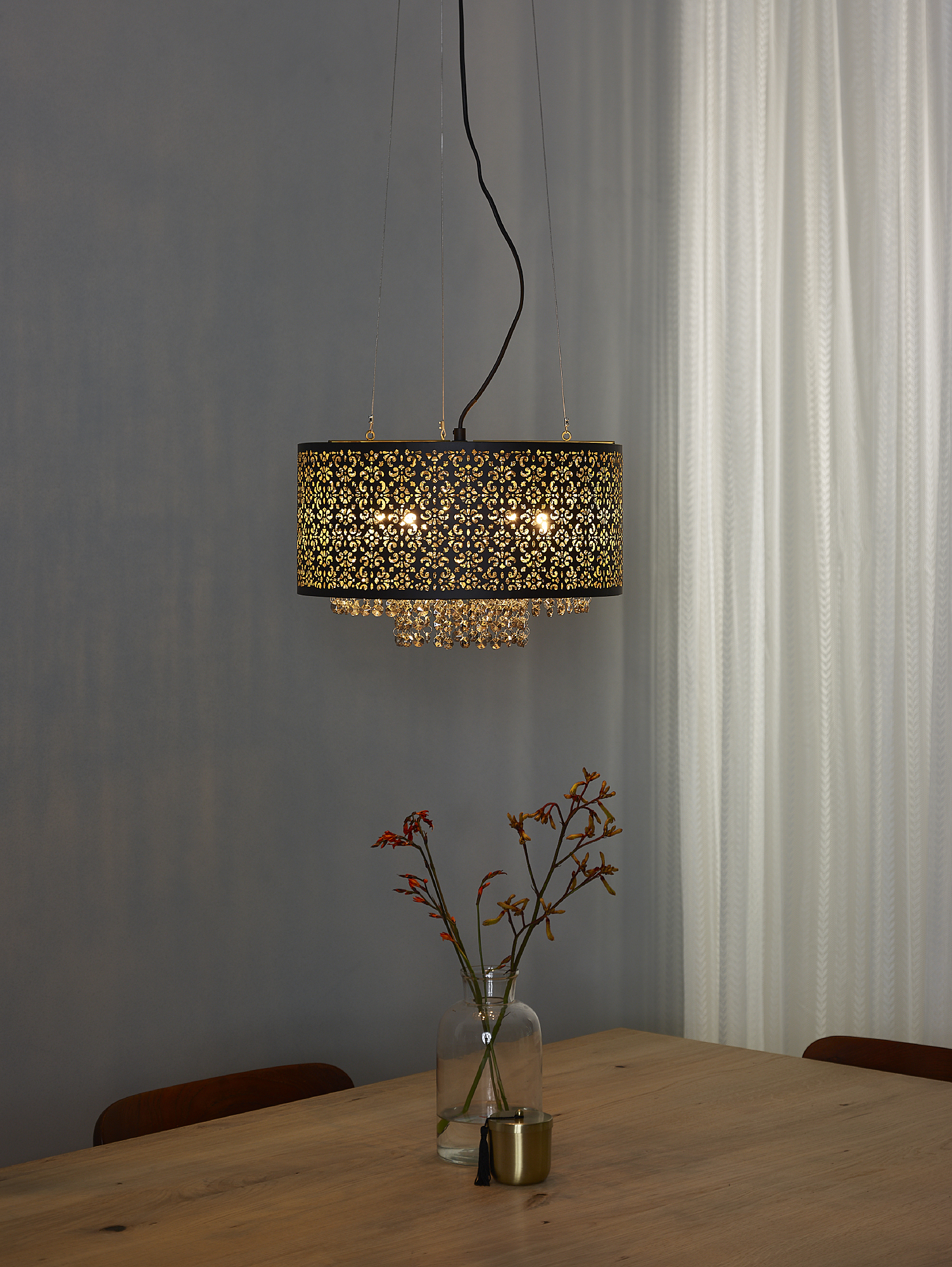 Допускается отличие страны-изготовителя, указанной в характеристиках. Линии производства могут находиться в нескольких государствах. Это не влияет на качество изготовления товара: все заводы данного бренда работают по общим стандартам, а готовые изделия проходят соответствующий контроль.Бельгия Коллекция Raka ЦветЦвет арматуры Черный Цвет Черный Материал арматуры Металл Цвет плафона Черный Материал плафона Металл, Стеклянные бусины РазмерыВысота (мм) 1570 Длина (мм) 410 Диаметр (мм) 410 Высота минимальная (мм) 250 Ширина (мм) 410 Диаметр абажура-плафона 410 Высота абажура-плафона 190 ЭлектрикаКоличество ламп (шт) 4 Цоколь G9 Лампочки в комплекте Нет в комплекте Мощность лампы (Вт) 33 Дополнительная информацияСтепень защиты (IP) IP20 Диммирование Да Тип подвеса На тросах -