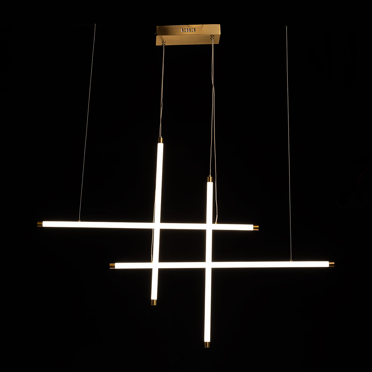 Минимализм в сочетании с функциональностью подчеркивает оригинальность светильника. Благородный цвет латуни смягчает строгость линий. Матовый акрил мягко рассеивает свет. Многорежимность освещения от 3000К до 6500К позволяет подобрать комфортную температуру света. ПДУ обеспечивает удобную эксплуатацию люстры. Светодиодные источники света экономичны и безопасны. Возможность регулировать комфортную высоту.