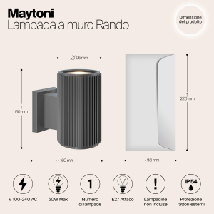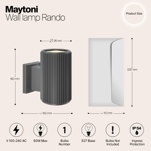 Фактурные настенные светильники для архитектурной подсветки. Металлический корпус устойчив к коррозии. IP 54 обеспечивает высокий уровень защиты от пыли и влаги. Комплектация светильников позволяет настраивать двухсторонний и однонаправленный световой поток. В серии представлены модели, рассчитанные на 1 и 2 лампы (Е27). Три оттенка на выбор: черный, серый, белый.