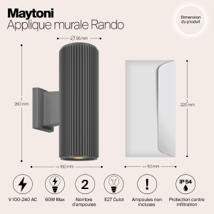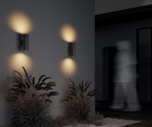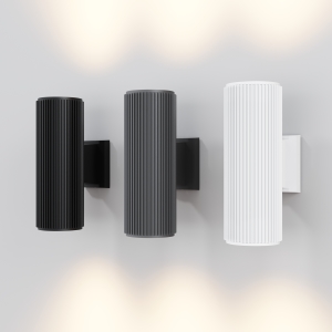 Фактурные настенные светильники для архитектурной подсветки. Металлический корпус устойчив к коррозии. IP 54 обеспечивает высокий уровень защиты от пыли и влаги. Комплектация светильников позволяет настраивать двухсторонний и однонаправленный световой поток. В серии представлены модели, рассчитанные на 1 и 2 лампы (Е27). Три оттенка на выбор: черный, серый, белый.