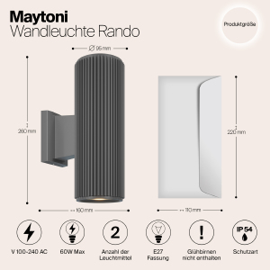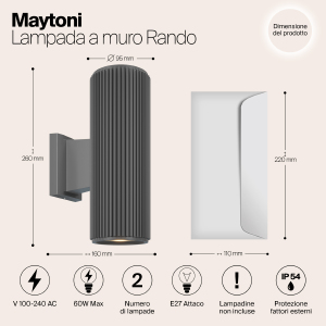 Допускается отличие страны-изготовителя, указанной в характеристиках. Линии производства могут находиться в нескольких государствах. Это не влияет на качество изготовления товара: все заводы данного бренда работают по общим стандартам, а готовые изделия проходят соответствующий контроль.Германия Коллекция Rando ЦветЦвет арматуры Серый Цвет Серый Материал арматуры Металл РазмерыВысота (мм) 260 Длина (мм) 260 Диаметр (мм) 95 Ширина (мм) 160 ЭлектрикаКоличество ламп (шт) 2 Цоколь E27 Мощность лампы (Вт) 60 Дополнительная информацияСтепень защиты (IP) IP54 Вес (Кг) 1,02 -