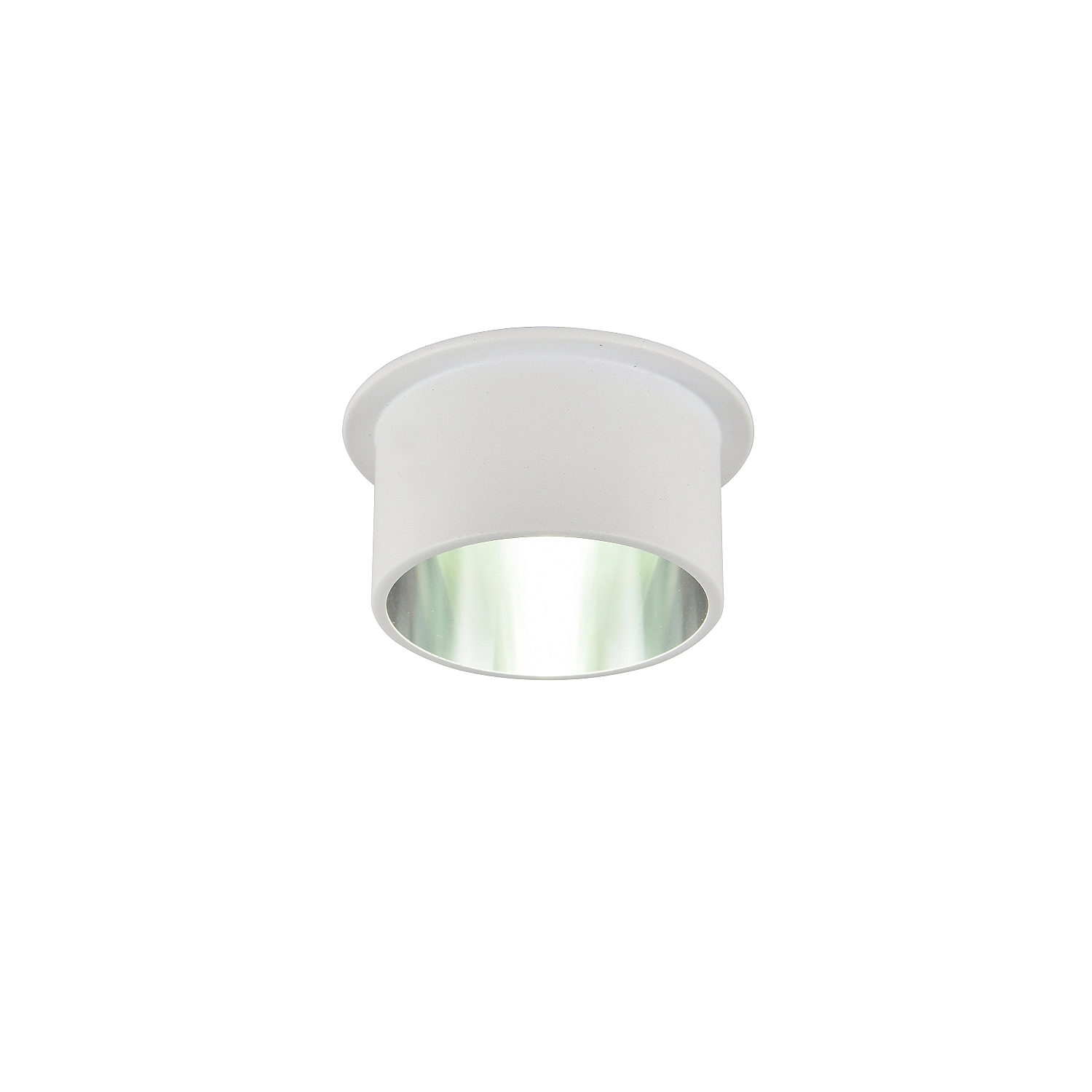 врезной светильник, каркас белого цвета, плафон сочетает в себе два цвета - белый на внешней стороне и серебро на внутренней, лампу GU10 можно менять