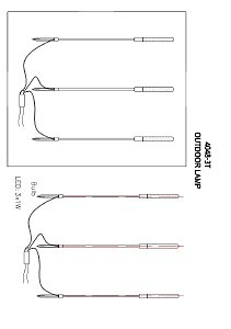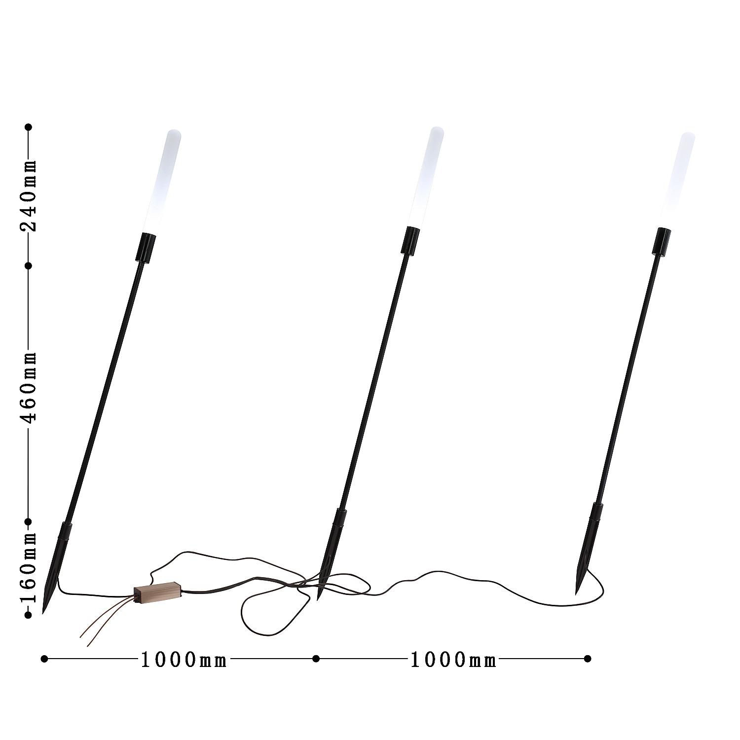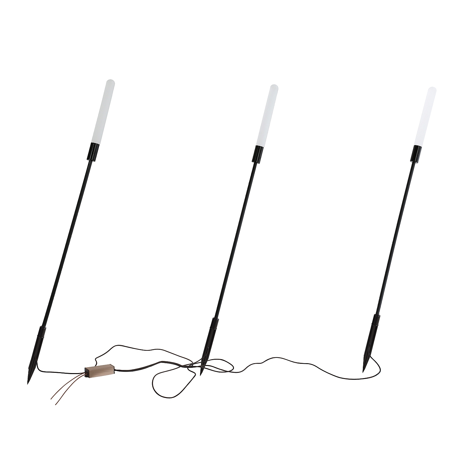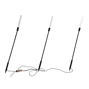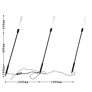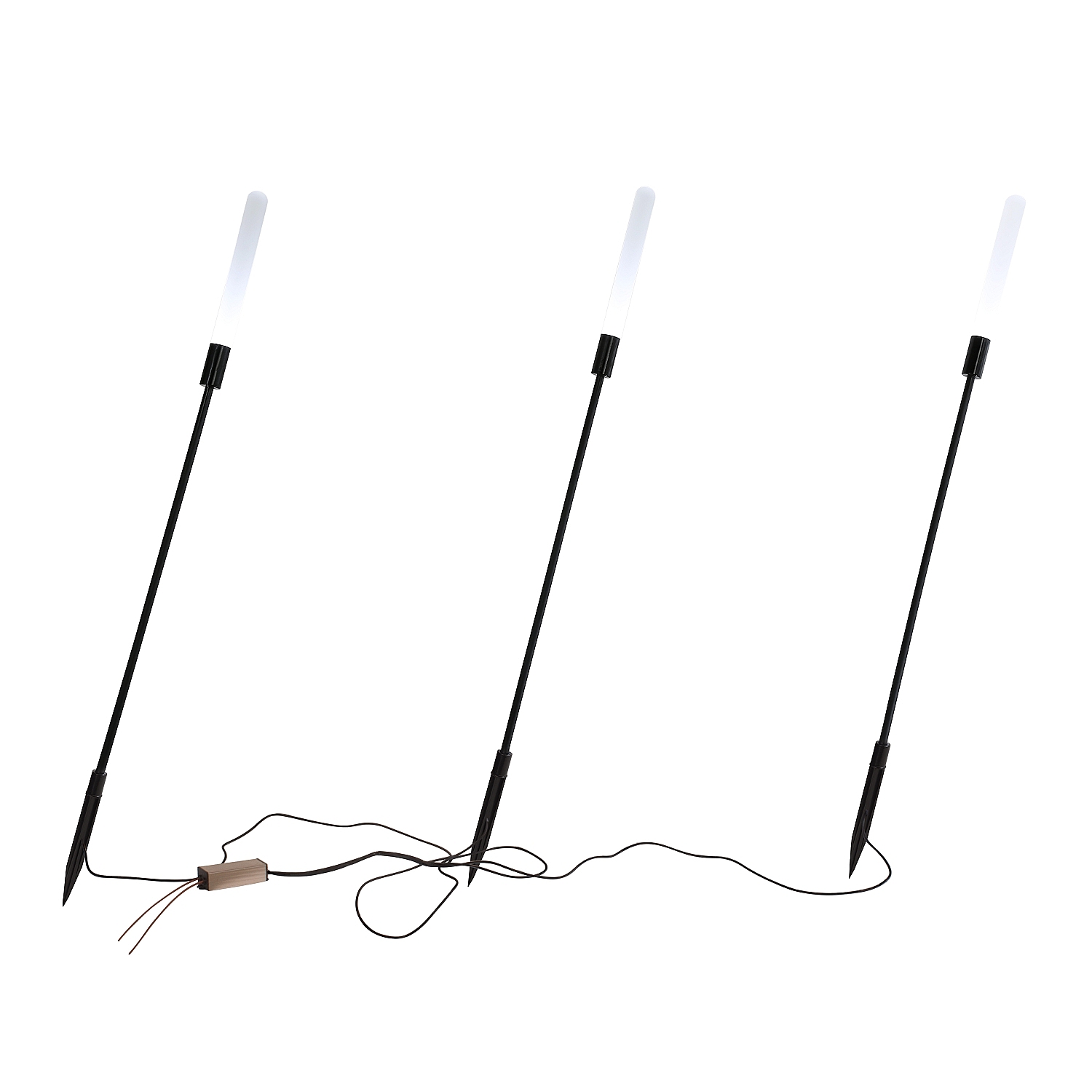 каркас черного цвета в виде стеблей камыша, белые акриловые рассеиватели, повышенная степень защиты от влаги, расстояние между светильниками 1 метр
