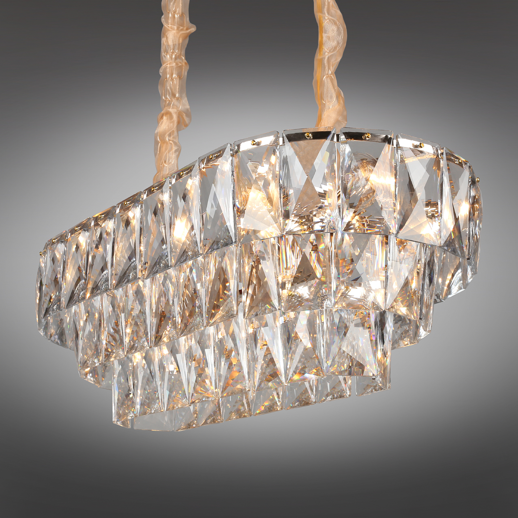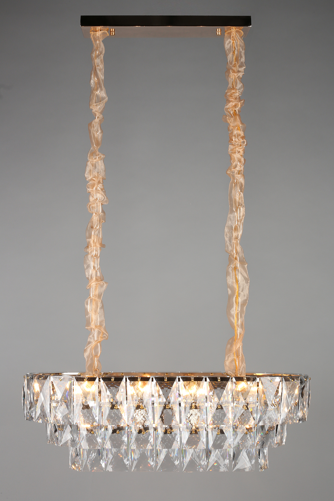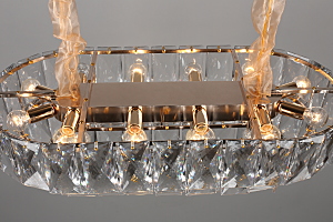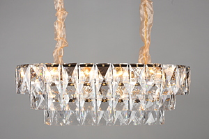 Допускается отличие страны-изготовителя, указанной в характеристиках. Линии производства могут находиться в нескольких государствах. Это не влияет на качество изготовления товара: все заводы данного бренда работают по общим стандартам, а готовые изделия проходят соответствующий контроль.Китай Коллекция Reggiolo ЦветЦвет арматуры Золото Цвет Прозрачный Материал арматуры Металл Цвет декора прозрачный Цвет плафона прозрачный Материал декора Хрусталь Материал плафона Хрусталь РазмерыВысота (мм) 1800 Длина (мм) 750 Высота минимальная (мм) 400 Ширина (мм) 350 ЭлектрикаКоличество ламп (шт) 16 Цоколь E14 Лампочки в комплекте Нет в комплекте Мощность лампы (Вт) 40 Общая мощность (Вт) 640 Напряжение (В) 220 Световой поток 6720 Дополнительная информацияСпособ крепления Крюк Вес (Кг) 21 Тип подвеса На цепи -
