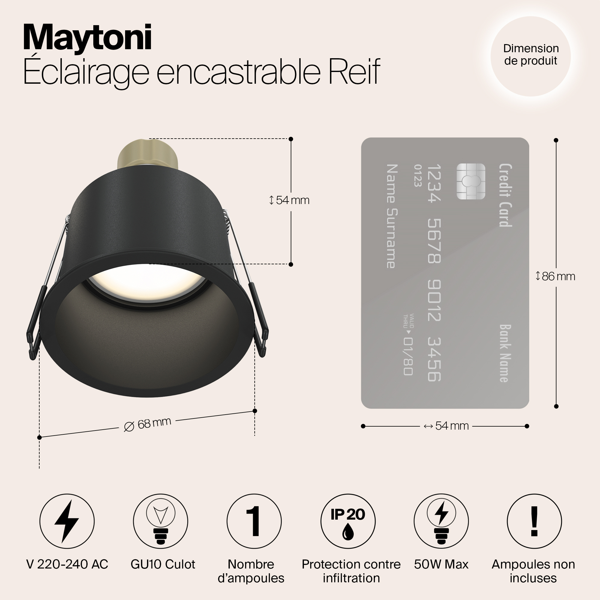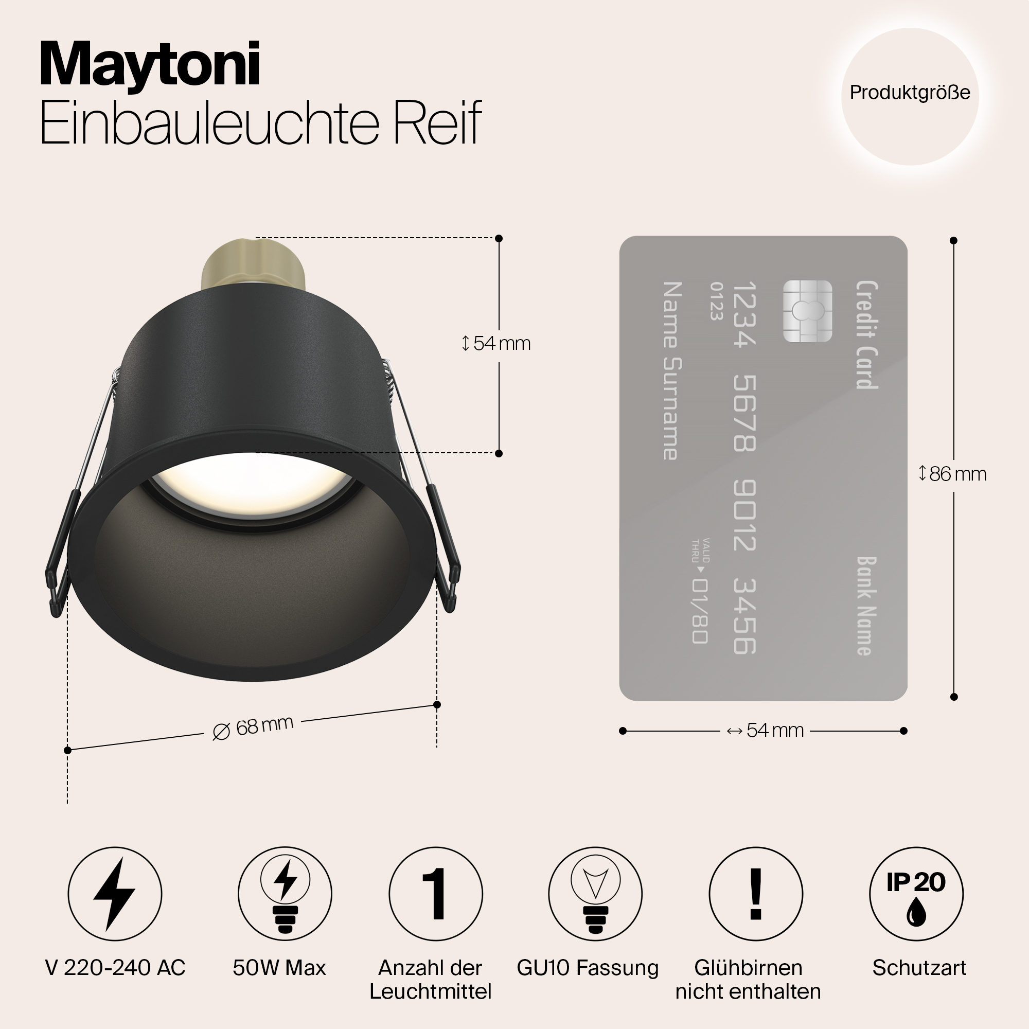 Допускается отличие страны-изготовителя, указанной в характеристиках. Линии производства могут находиться в нескольких государствах. Это не влияет на качество изготовления товара: все заводы данного бренда работают по общим стандартам, а готовые изделия проходят соответствующий контроль.Германия Коллекция Reif ЦветЦвет арматуры Черный Цвет Черный Материал арматуры Алюминий РазмерыВысота (мм) 54 Диаметр (мм) 68 Высота минимальная (мм) 54 Ширина (мм) 68 Диаметр врезного отверстия (мм) 65 ЭлектрикаКоличество ламп (шт) 1 Цоколь GU10 Мощность лампы (Вт) 10 Напряжение (В) 220 Дополнительная информацияСтепень защиты (IP) IP20 Вес (Кг) 0,1 -