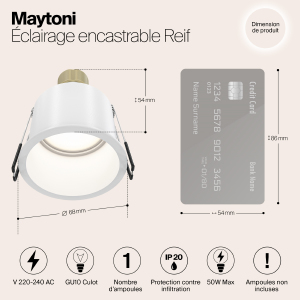 Допускается отличие страны-изготовителя, указанной в характеристиках. Линии производства могут находиться в нескольких государствах. Это не влияет на качество изготовления товара: все заводы данного бренда работают по общим стандартам, а готовые изделия проходят соответствующий контроль.Германия Коллекция Reif ЦветЦвет арматуры Белый Цвет Белый Материал арматуры Алюминий РазмерыВысота (мм) 54 Диаметр (мм) 68 Высота минимальная (мм) 54 Ширина (мм) 68 Диаметр врезного отверстия (мм) 65 ЭлектрикаКоличество ламп (шт) 1 Цоколь GU10 Мощность лампы (Вт) 10 Напряжение (В) 220 Дополнительная информацияСтепень защиты (IP) IP20 Вес (Кг) 0,07 -