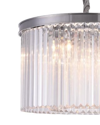 РЕЙН. Черный металлический диск - основа этой необычной люстры. Главной декоративной составляющей модели "РЕЙН", являются хрустальные призмы с треугольной огранкой, расположенные в несколько ярусов. Люстры достаточно просты и лаконичны в исполнении, но свет, преломленный в многочисленных гранях хрусталя зазвучит новыми нотками и наполнит интерьер благородным сиянием.