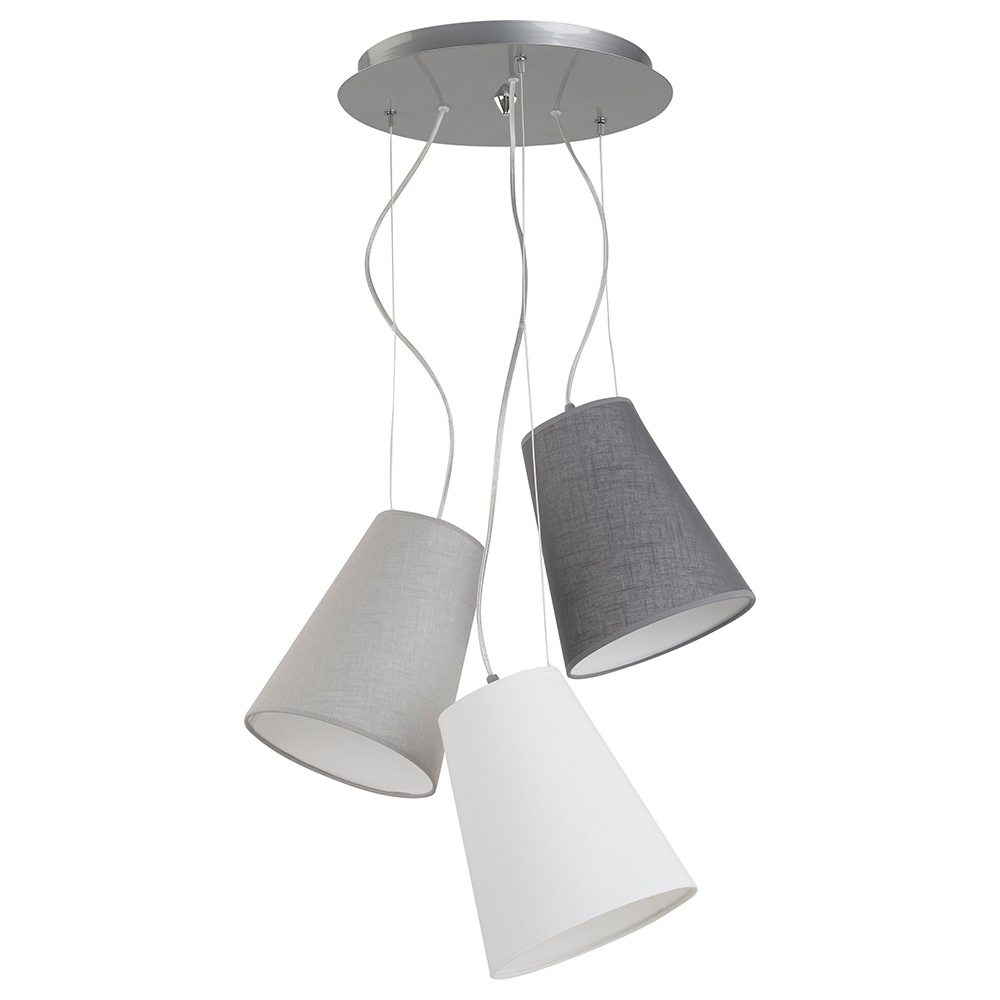 Допускается отличие страны-изготовителя, указанной в характеристиках. Линии производства могут находиться в нескольких государствах. Это не влияет на качество изготовления товара: все заводы данного бренда работают по общим стандартам, а готовые изделия проходят соответствующий контроль.Польша Коллекция Retto ЦветЦвет арматуры Серебро Цвет Серый Материал арматуры Сталь Цвет плафона разноцветный Материал плафона Ткань РазмерыДиаметр (мм) 450 Высота минимальная (мм) 850 ЭлектрикаКоличество ламп (шт) 3 Цоколь E27 Тип лампы Накаливания Мощность лампы (Вт) 60 Общая мощность (Вт) 180 Напряжение (В) 220 Световой поток 210 Дополнительная информацияСтепень защиты (IP) IP20 Место установки на потолок Вес (Кг) 1,73 -