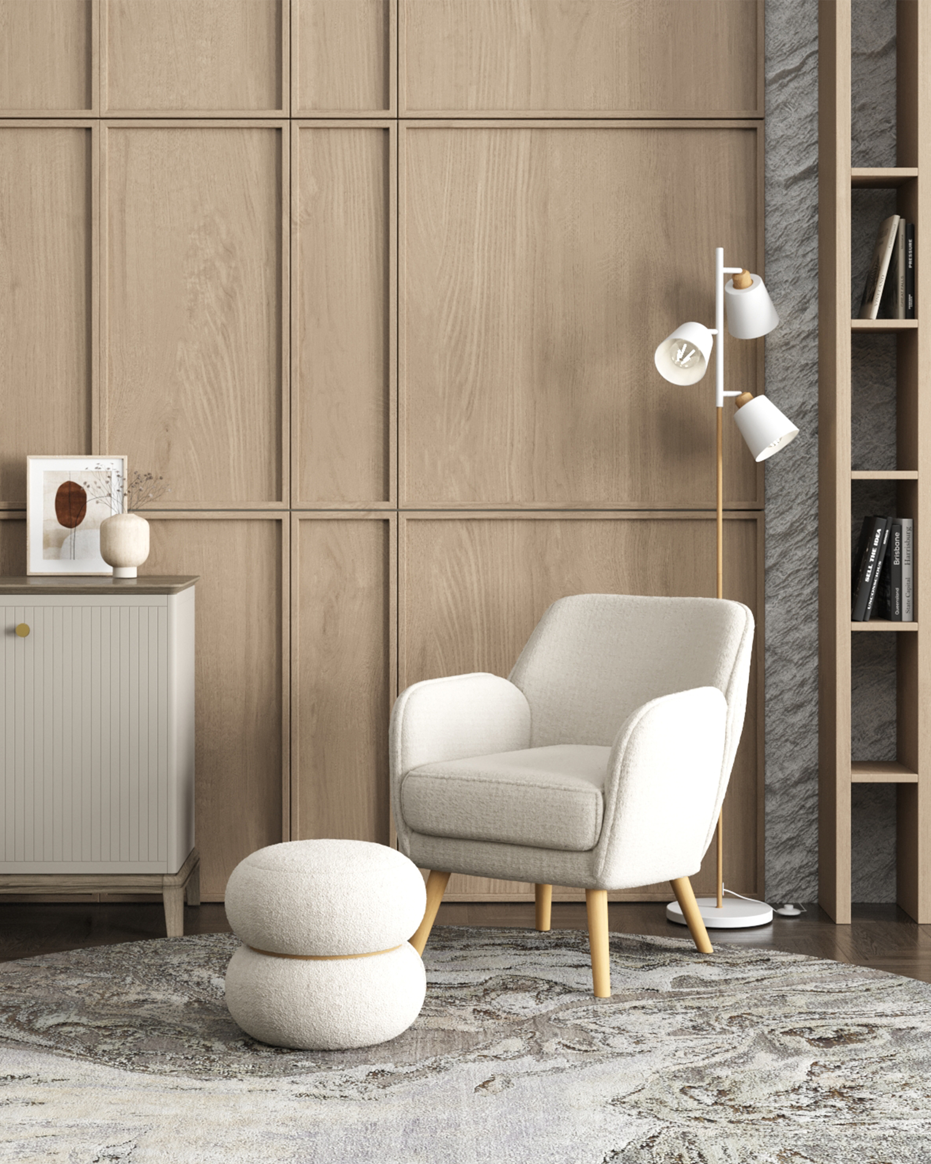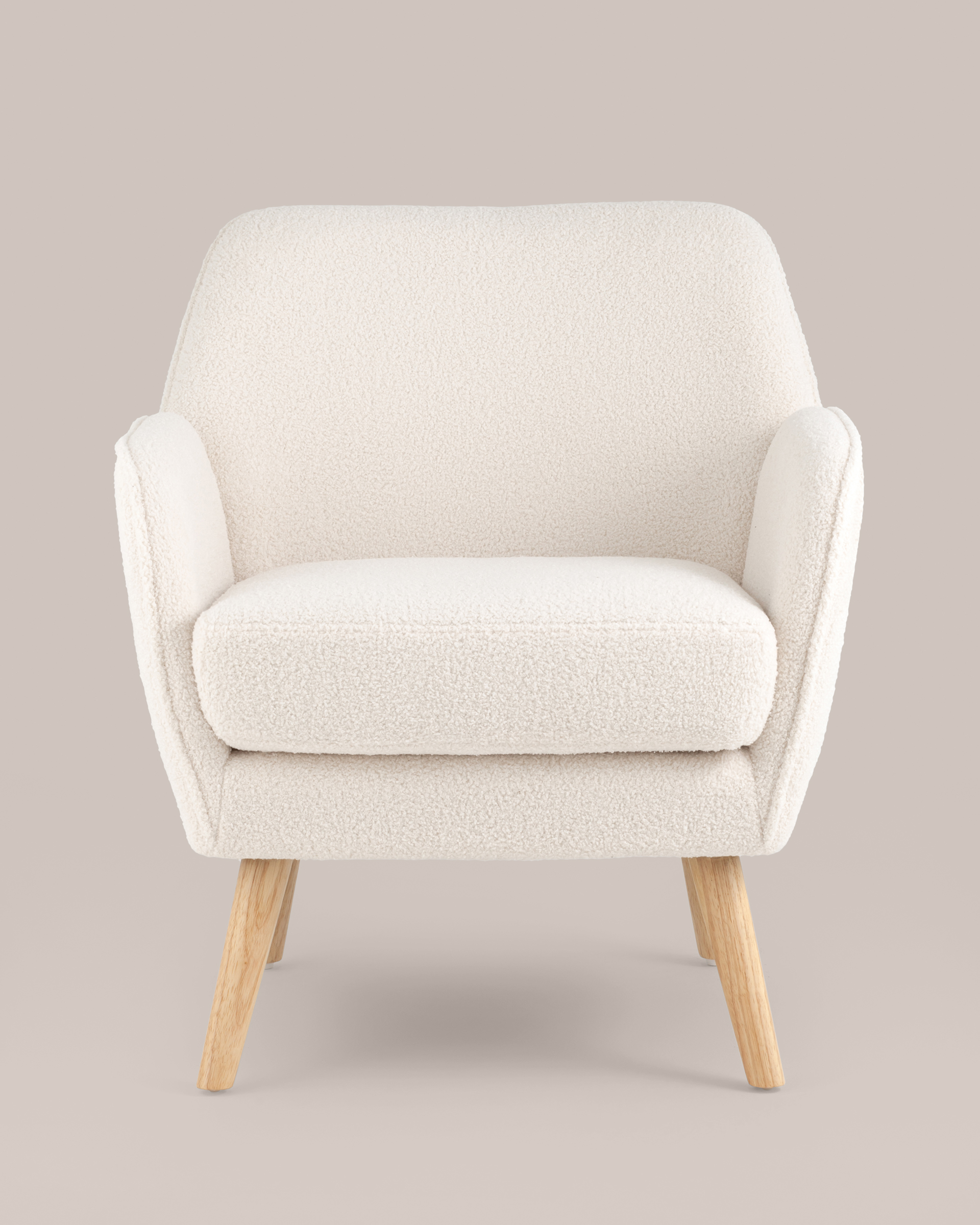 Кресло Ричи белый мягкое ткань тедди ножки массив дерева