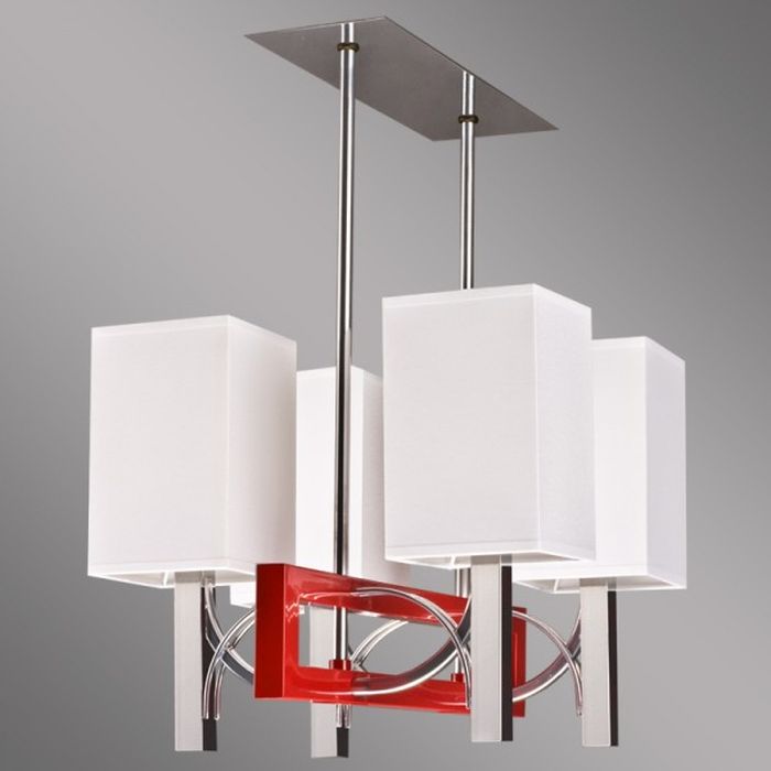 Допускается отличие страны-изготовителя, указанной в характеристиках. Линии производства могут находиться в нескольких государствах. Это не влияет на качество изготовления товара: все заводы данного бренда работают по общим стандартам, а готовые изделия проходят соответствующий контроль.Польша Коллекция Riffta ЦветЦвет арматуры Хром, Красный Цвет Хром Материал арматуры Металл Цвет плафона Белый Материал плафона Текстиль РазмерыВысота (мм) 470 Длина (мм) 400 Ширина (мм) 310 ЭлектрикаКоличество ламп (шт) 4 Цоколь E14 Мощность лампы (Вт) 60W Напряжение (В) 220 Дополнительная информацияВес (Кг) 2.00 -