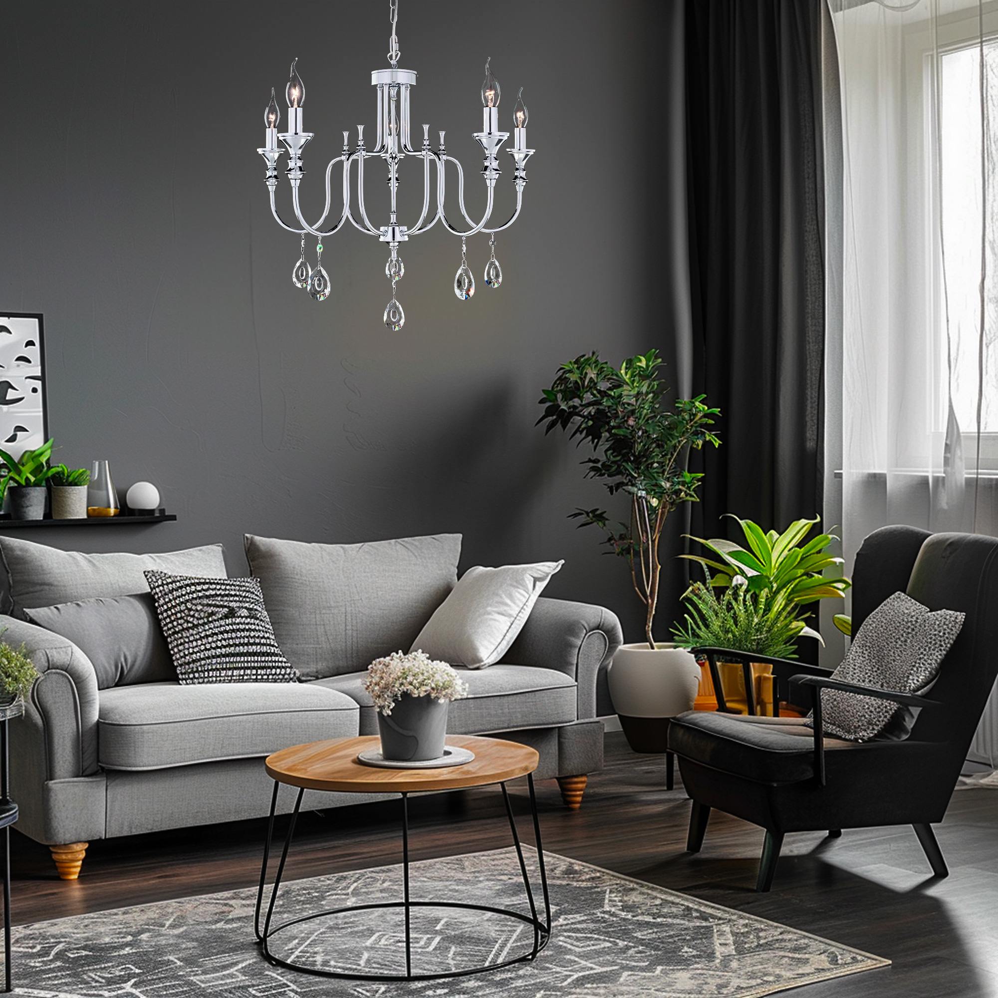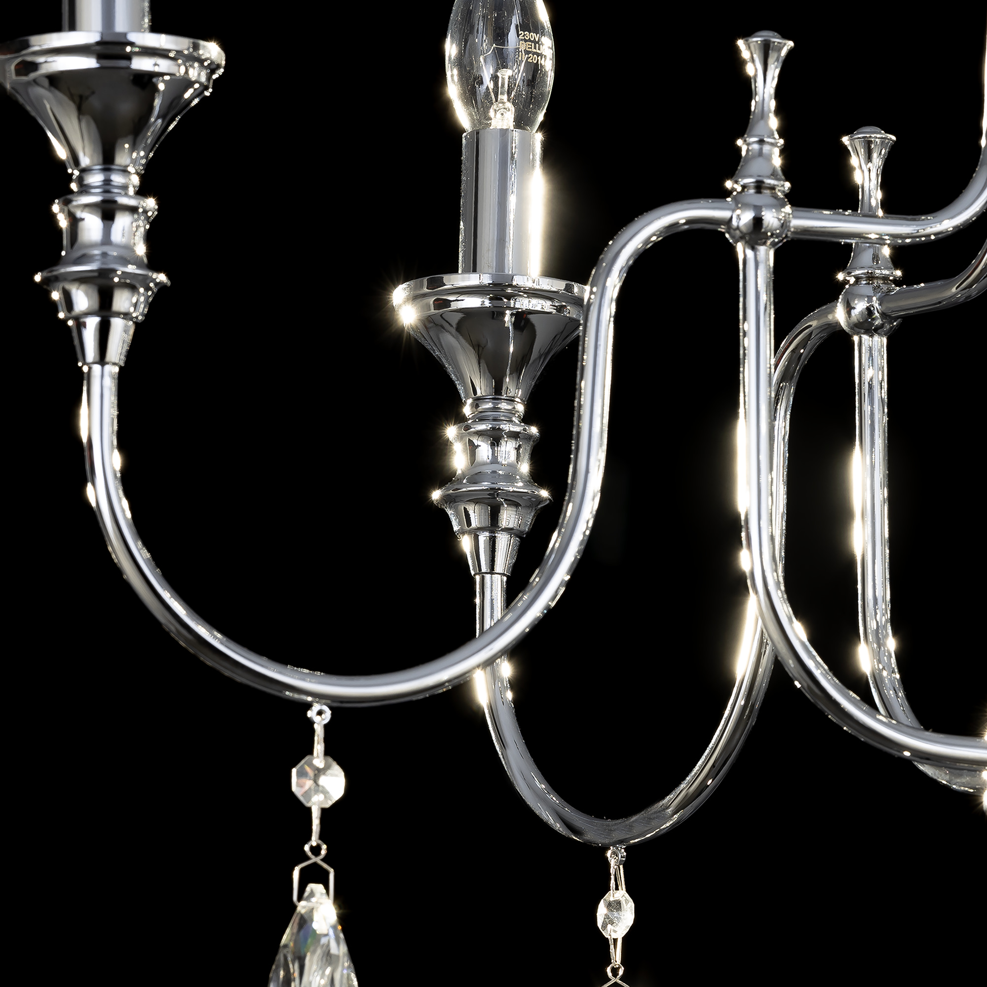 Допускается отличие страны-изготовителя, указанной в характеристиках. Линии производства могут находиться в нескольких государствах. Это не влияет на качество изготовления товара: все заводы данного бренда работают по общим стандартам, а готовые изделия проходят соответствующий контроль.Дания Коллекция Рига ЦветЦвет арматуры Хром Цвет Хром Материал арматуры Металл РазмерыВысота (мм) 1300 Диаметр (мм) 640 Высота минимальная (мм) 770 Ширина (мм) 640 ЭлектрикаКоличество ламп (шт) 5 Цоколь Е14 Тип лампы Накаливания, Светодиодные, Компактные люмин. Мощность лампы (Вт) 60W Общая мощность (Вт) 300 Напряжение (В) 220 Площадь освещения 14 Дополнительная информацияСпособ крепления Крюк Вес (Кг) 2.900 Тип подвеса На цепи -