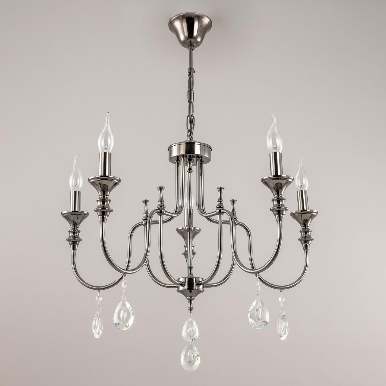 Допускается отличие страны-изготовителя, указанной в характеристиках. Линии производства могут находиться в нескольких государствах. Это не влияет на качество изготовления товара: все заводы данного бренда работают по общим стандартам, а готовые изделия проходят соответствующий контроль.Дания Коллекция Рига ЦветЦвет арматуры черный хром Цвет Хром Материал арматуры Металл РазмерыВысота (мм) 1300 Диаметр (мм) 640 Высота минимальная (мм) 770 Ширина (мм) 640 ЭлектрикаКоличество ламп (шт) 5 Цоколь E14 Тип лампы Светодиодная, Накаливания, Энергосберегающая (КЛЛ) Мощность лампы (Вт) 60W Общая мощность (Вт) 300 Напряжение (В) 220 Площадь освещения 14 Дополнительная информацияСпособ крепления Крюк Вес (Кг) 2,9 Тип подвеса На цепи -