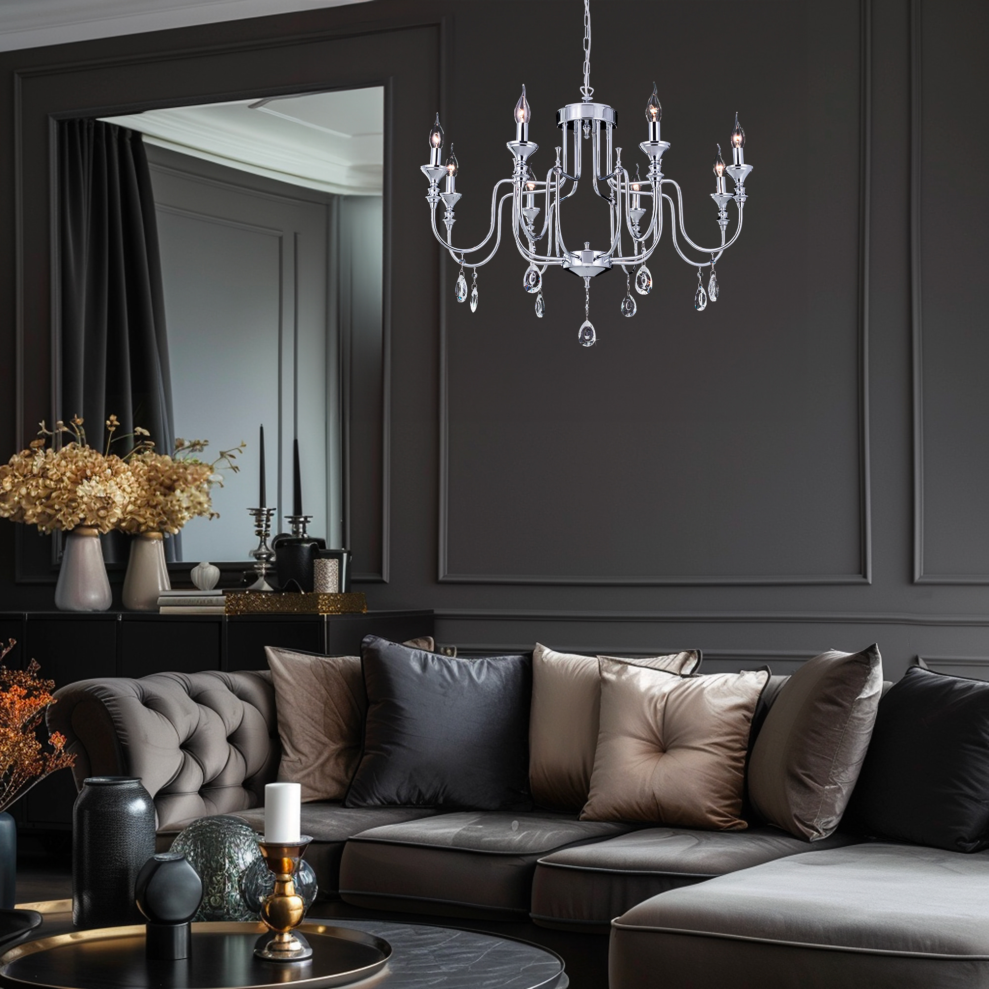 Допускается отличие страны-изготовителя, указанной в характеристиках. Линии производства могут находиться в нескольких государствах. Это не влияет на качество изготовления товара: все заводы данного бренда работают по общим стандартам, а готовые изделия проходят соответствующий контроль.Дания Коллекция Рига ЦветЦвет арматуры Хром Цвет Хром Материал арматуры Металл РазмерыВысота (мм) 1300 Диаметр (мм) 810 Высота минимальная (мм) 820 Ширина (мм) 810 ЭлектрикаКоличество ламп (шт) 8 Цоколь Е14 Тип лампы Накаливания, Светодиодные, Компактные люмин. Мощность лампы (Вт) 60W Общая мощность (Вт) 480 Напряжение (В) 220 Площадь освещения 23 Дополнительная информацияСпособ крепления Крюк Вес (Кг) 5.100 Тип подвеса На цепи -