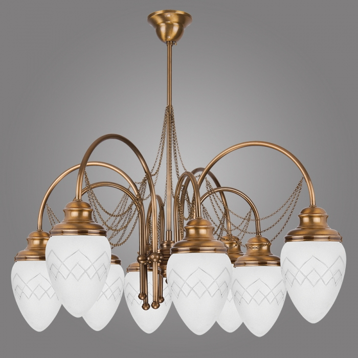 Допускается отличие страны-изготовителя, указанной в характеристиках. Линии производства могут находиться в нескольких государствах. Это не влияет на качество изготовления товара: все заводы данного бренда работают по общим стандартам, а готовые изделия проходят соответствующий контроль.Польша Коллекция Rinama 2 ЦветЦвет арматуры Бронза Цвет Бронза Материал арматуры Латунь Цвет плафона Белый Материал плафона Стекло РазмерыВысота (мм) 650 Диаметр (мм) 740 ЭлектрикаКоличество ламп (шт) 8 Цоколь E27 Мощность лампы (Вт) 60W Напряжение (В) 220 Дополнительная информацияВес (Кг) 5.10 -