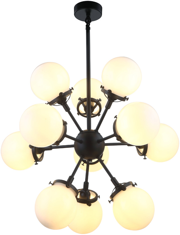 Люстра подвесная из коллекции Ring выполнена из металла, окрашенного в черный цвет, и декорирована стеклянными круглыми плафонами из матового стекла. Премиальное качество и неповторимыи? дизаи?н светильников идеально подои?дут в современные и дизайнерские интерьеры.